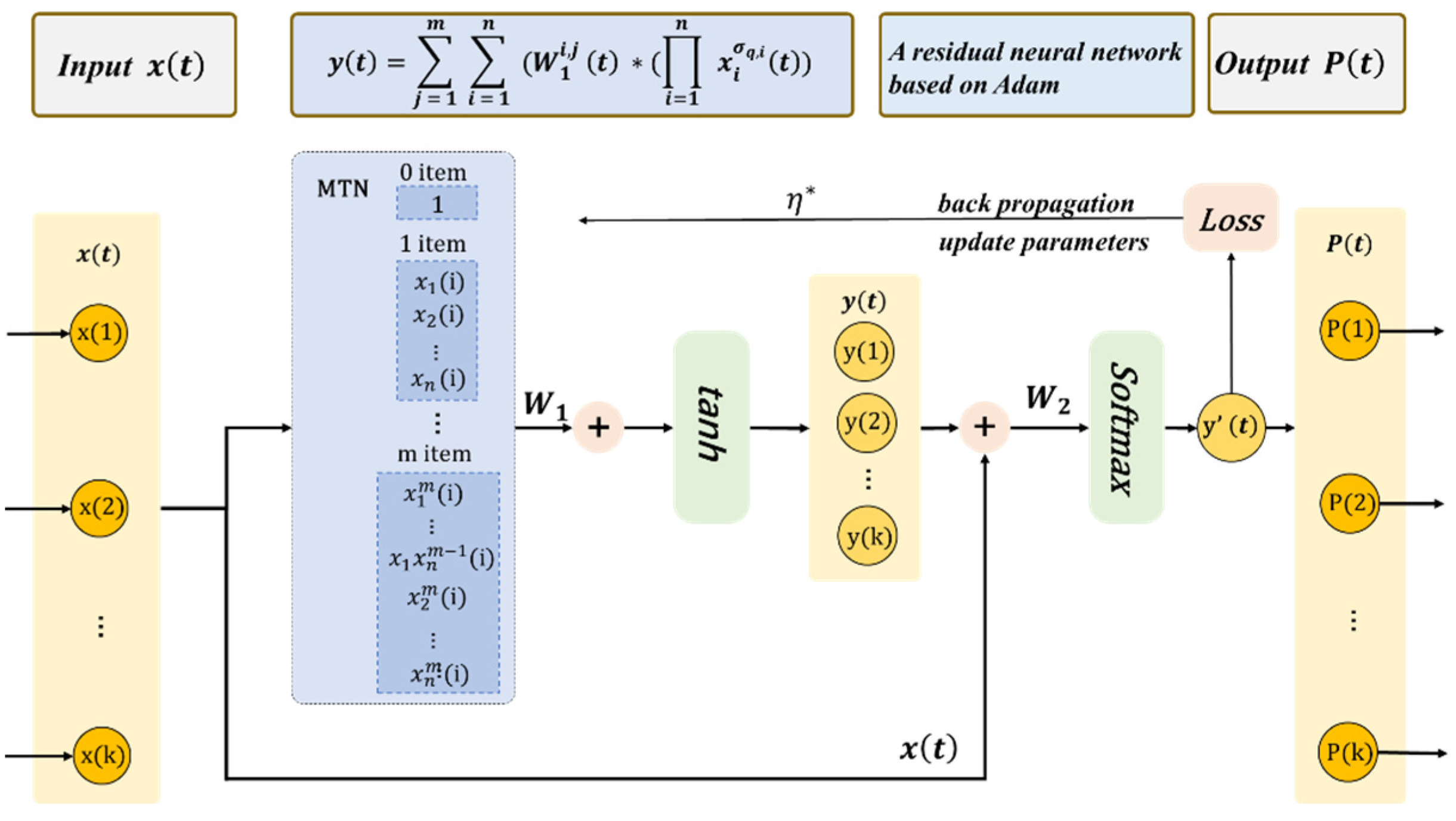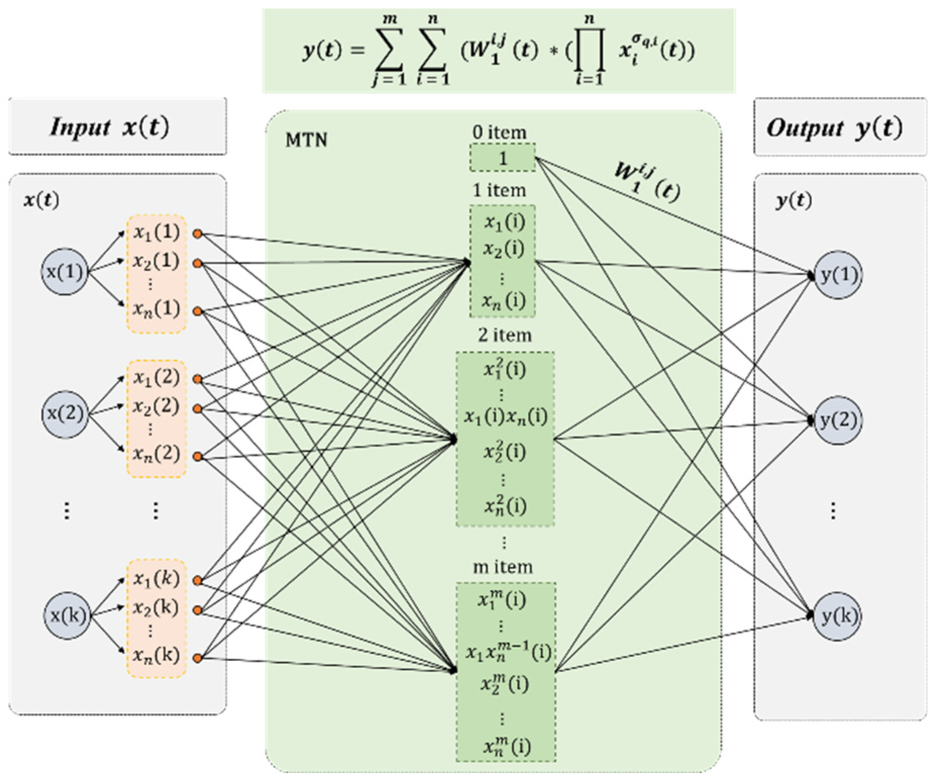 The core component of RPN, the Multi-dimensional Taylor Network (MTN), consists of an input layer, an intermediate layer, and an output layer, utilizing a single intermediate forward layer structure. Its structure is shown in