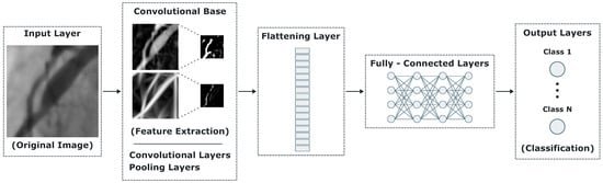 The problem has been also addressed by the use of deep learning techniques, which are a completely different approach when compared with manual feature extraction and machine learning techniques. The use of convolutional neural networks (CNN) for coronary stenosis detection and classification is the most common approach reported in deep learning-related literature [9,10]. One of main drawbacks of using traditional CNN architectures is the need for large image databases. This commonly leads to the use of highly complex CNN architectures, which could decrease its performance in terms of accuracy when small image databases are used for object detection or classification tasks [11]. To overcome the disadvantages of work with small image databases, the use of data augmentation and transfer learning techniques has been applied successfully. Despite the gains in classification accuracy provided by data augmentation, the absence of novel, empirical datasets poses challenges for clinical adoption [12,13]. In addition, as CNN architectural complexity increases, the difficulty of identifying the specific components most critical to the classification task scales accordingly [14].