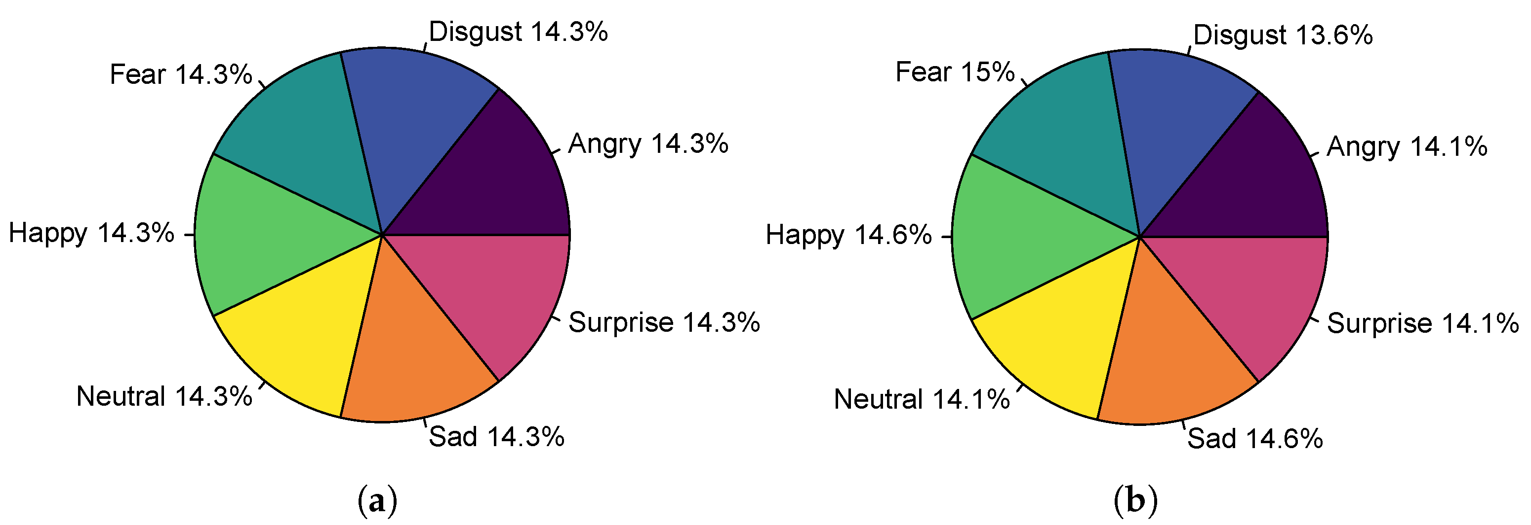 Neutral/Sad misclassifications. In contrast, matrix (b) shows a moderate-to-high overall score; it particularly struggles with discrimination among
