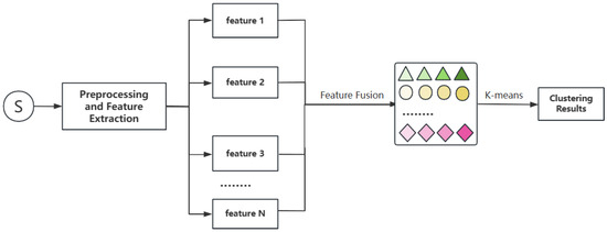 This fused high-dimensional feature vector is subsequently employed as the input for the clustering algorithm. The concatenated feature vector P is standardized by applying z-score normalization, in which each feature dimension is transformed to have zero mean and unit variance. This procedure eliminates the influence of differences in feature scales on the clustering results.
