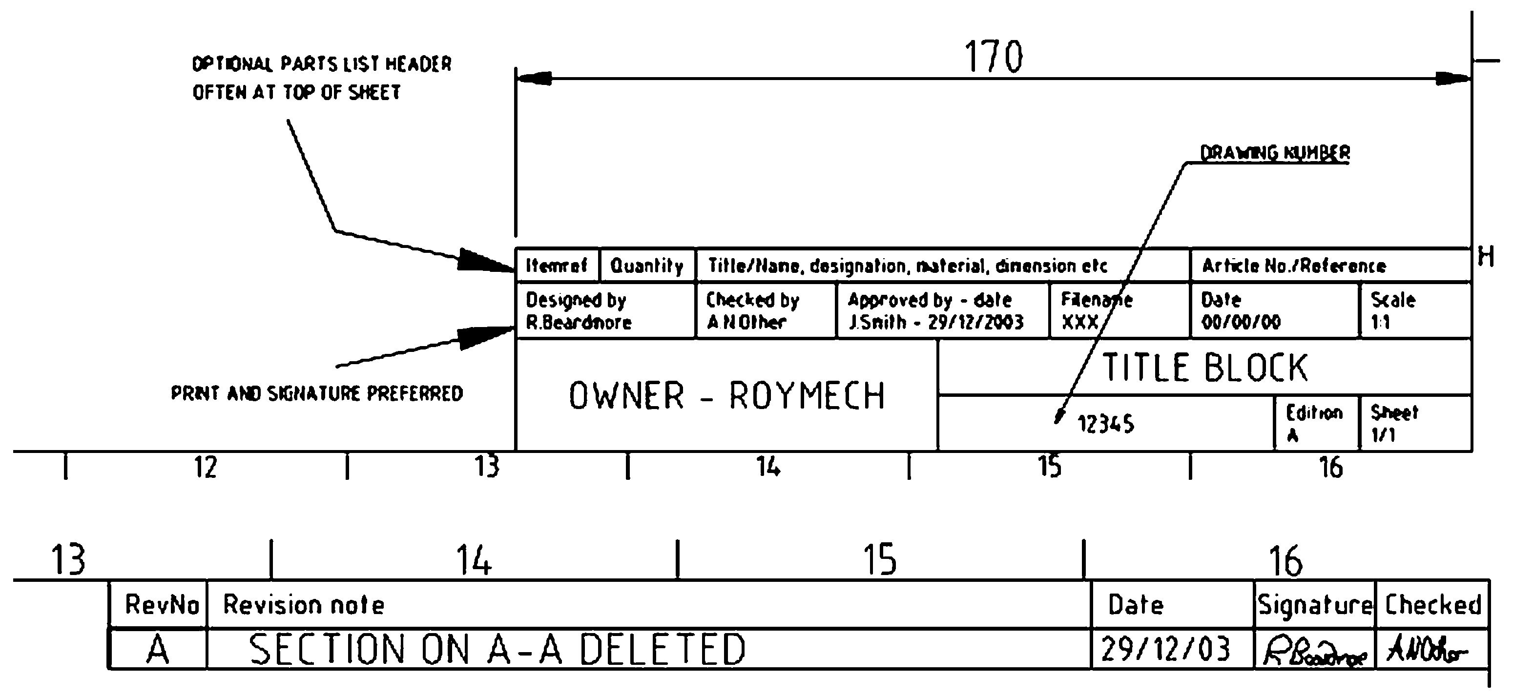 Title block compliance targets are typically defined through a combination of formal standards and project- or company-specific rules. Some title block standards exist, such as ISO 7200:2004 [