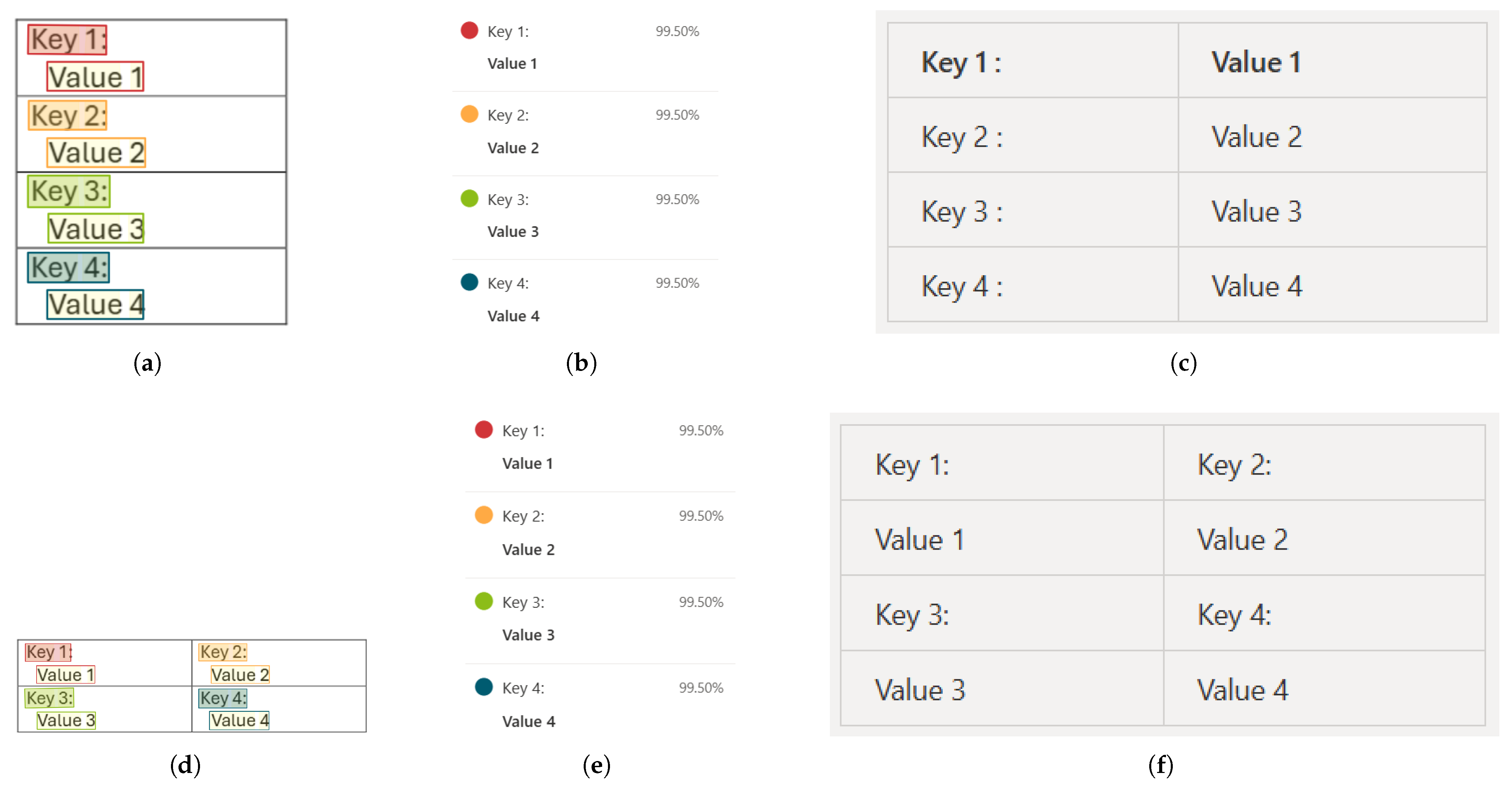 Figure 3c,f) in which positional information is retained. This output can serve as a basis for structural compliance checking, provided that an additional step is introduced to reliably associate each key with its corresponding value.