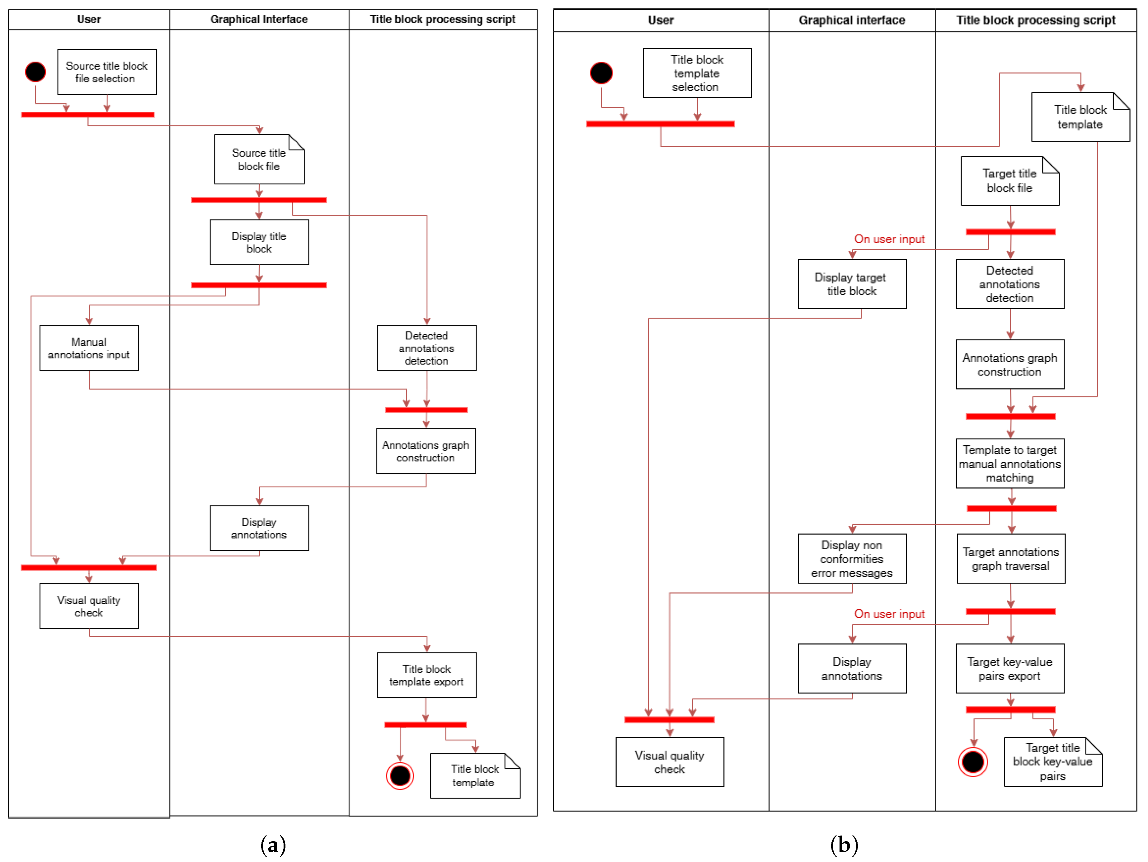 Our method demonstrates the ability to successfully match a wide range of generic entities commonly found in title blocks and to flag non-compliances, provided that a shared template is available. The matching procedure, while still imperfect, has shown some robustness to typical distortions between source and target title blocks while giving the user the ability to control possible variabilities through a graphical interface.