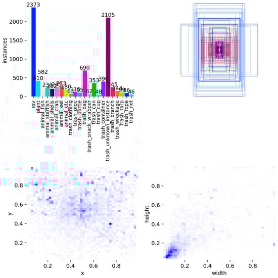 - Spatial Bias and Prevalence of Small Objects: The heatmap of object centers indicates a preference for the lower-middle region of images, consistent with the ROV’s top-down viewing angle. Meanwhile, the width-height density plot shows that the vast majority of bounding boxes have small normalized dimensions. This indicates that small objects dominate the dataset. In turbid underwater environments with strong texture interference, these small targets are prone to detail loss.