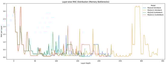 The following supporting information can be downloaded at: https://www.mdpi.com/article/10.3390/a19020113/s1. Supplementary Material (CSV): Layer-wise complexity breakdown for four models. This file provides a layer-by-layer profiling report for YOLOv8-SlimNeck, YOLO11-SlimNeck, YOLOv8-SvelteNeck, and YOLO11-SvelteNeck (as defined in the main text). Under a unified input setting (1 × 3 × 640 × 640, single forward pass), we record for each layer/operator its FLOPs (M), Memory Access Cost (MAC, M; memory traffic/access cost rather than multiply–accumulate operations), Intensity = FLOPs/MAC, parameter count, and the input/output tensor shapes. This supplementary report is provided to support the overall complexity comparison in the manuscript and to facilitate reproducibility and identification of memory-bound bottlenecks at the operator level.