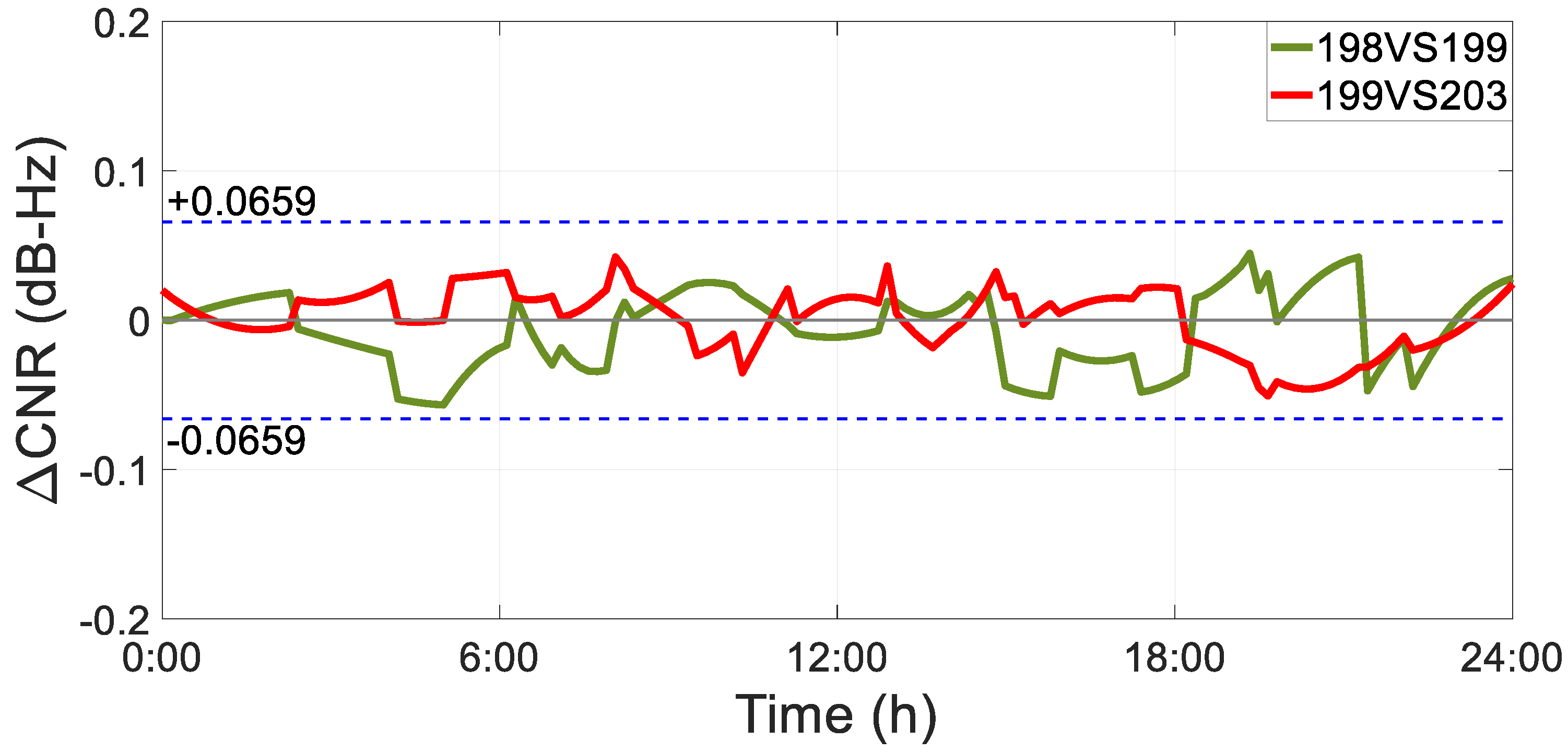 2.3.2. Difference in CNR Between Different Frequencies and Different Satellites