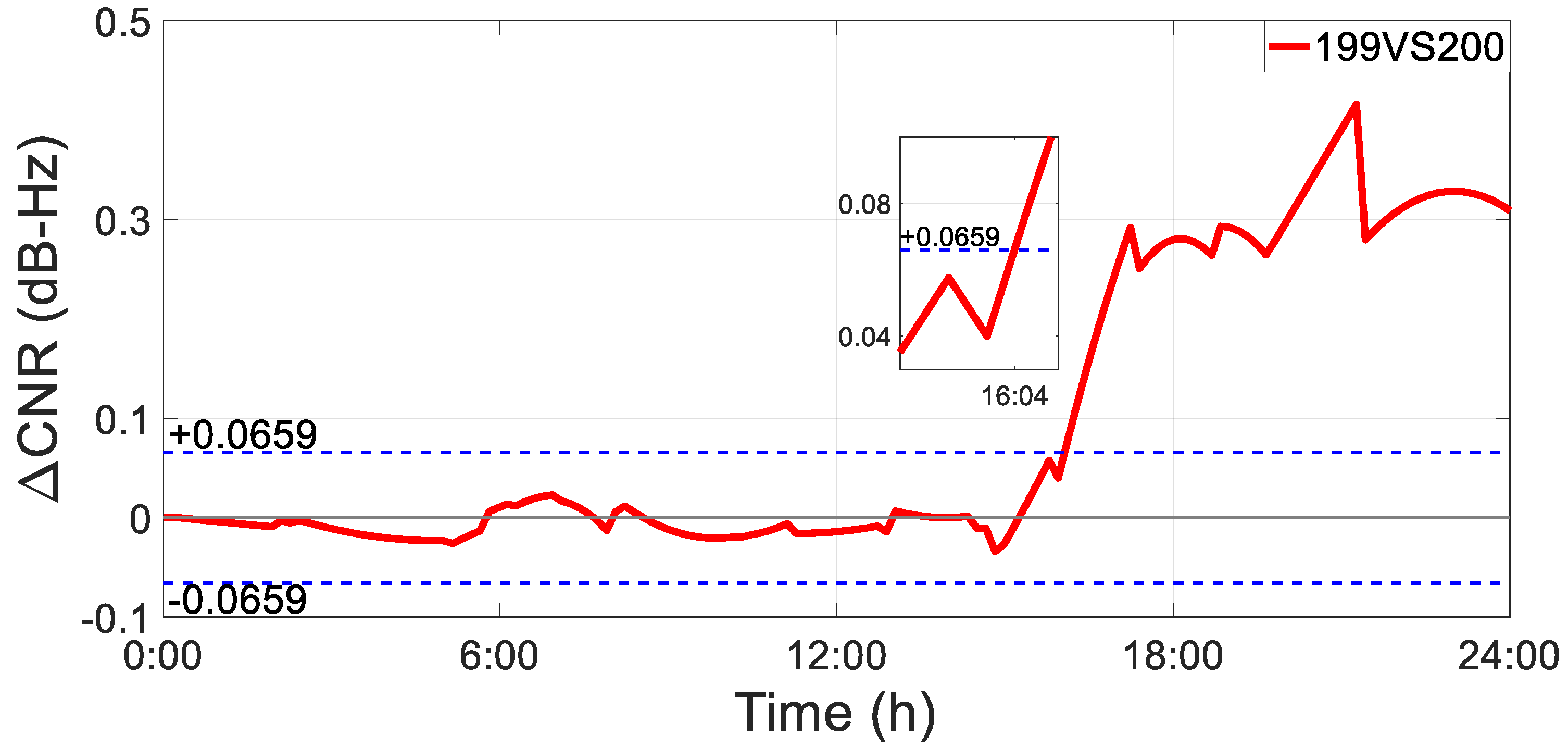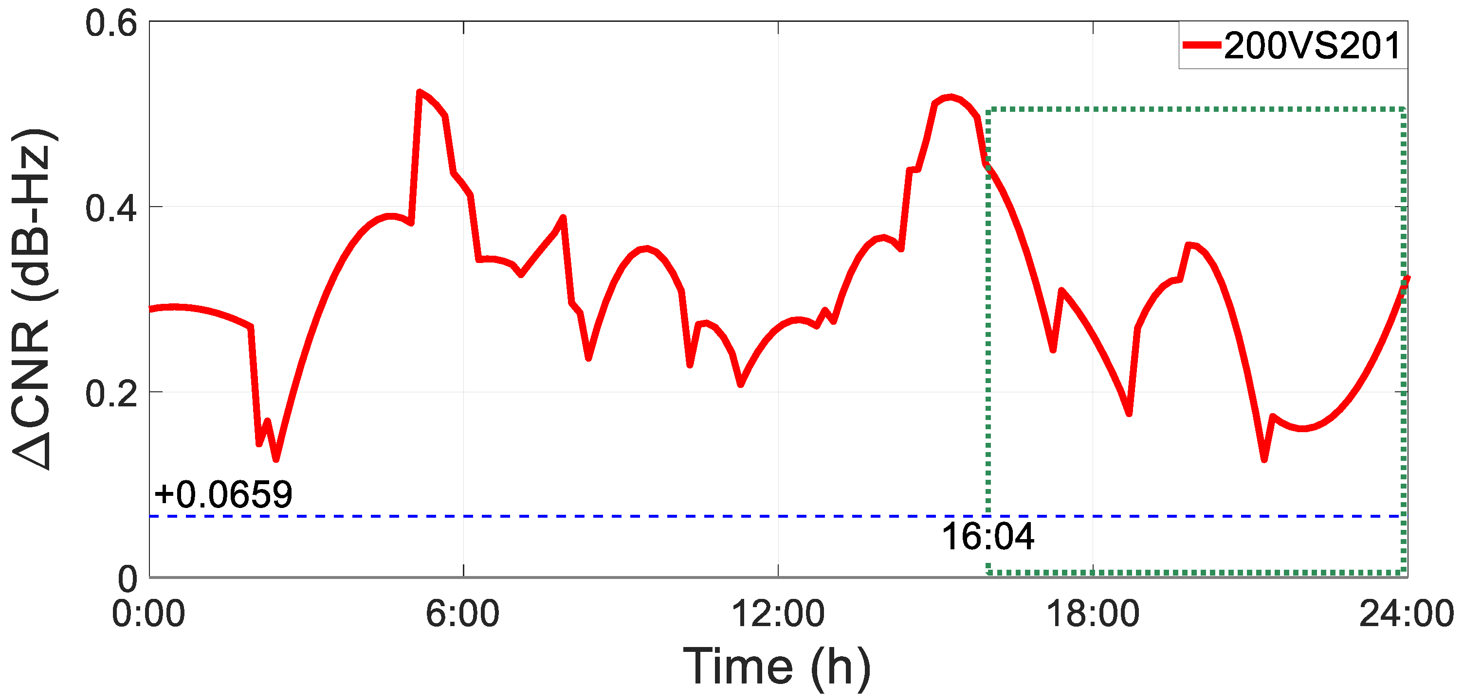 The comparison of CNR at the L1 frequency for the GPS G16 satellite is illustrated in
