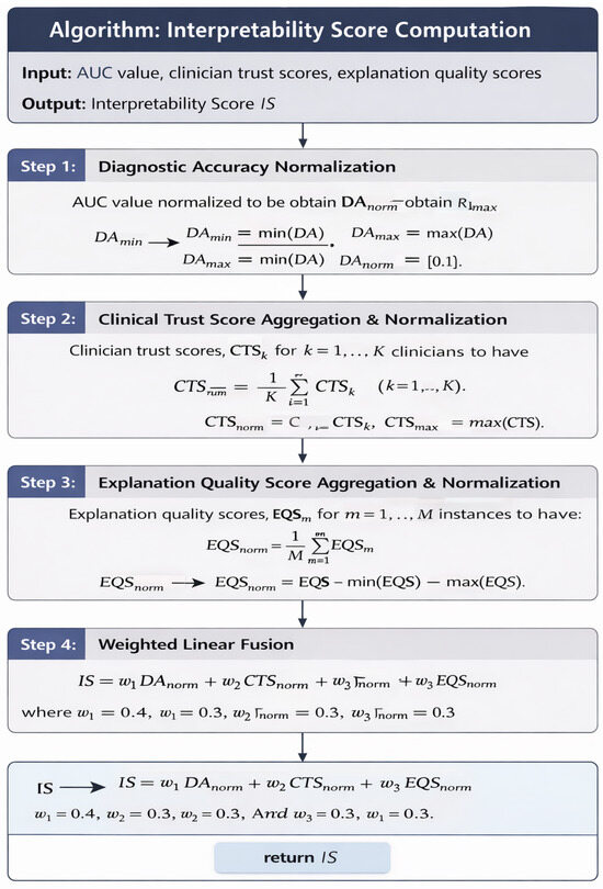 The algorithm presented in Figure 3 describes the step wise computational details along with the mathematical formulation of the proposed Interpretability Score.