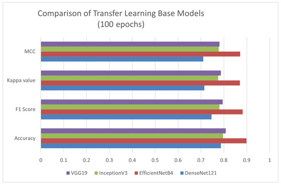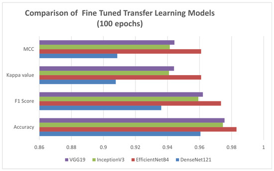 - In this study, a comparison of four state-of-the-art DL architectures, DenseNet121 [14], EfficientNetB4 [15], InceptionV3 [16], VGG19 [2], has been presented. This achieves better accuracy and efficiency. The problem of limited medical image data has been addressed by using pre-trained models, thereby improving the model’s generalizability.