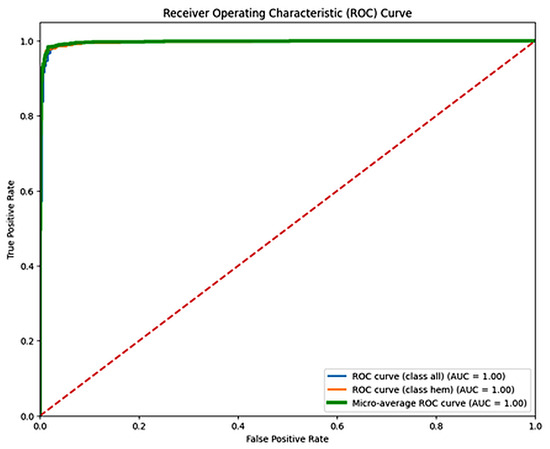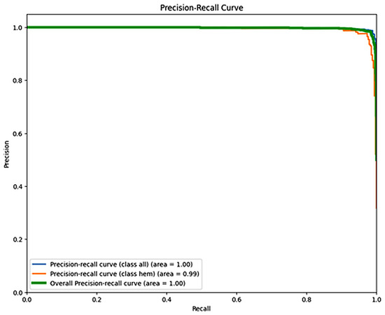 Compared with recent studies that use DL models such as CNNs, ensembles, and transfer learning for ALL classification, the proposed framework achieves 98.3% accuracy. The deep CNN model proposed by Oybek et al. achieved 93.7% accuracy for ALL detection [37], and Rajpurkar et al. reported 94.6% accuracy via implementing DL models for medical image classification [38]. The proposed approach achieved improved diagnostic accuracy and higher precision and recall.