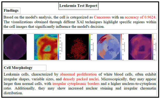 The framework also generates a patient report that summarizes the explanation (both visual and textual) of the predicted decision. This report provides details that lead to a diagnostic conclusion. It also deepens understanding of the model’s predictions within the clinical context. Hence, the proposed framework comprehensively addresses ALL detection in an interpretable and understandable manner.