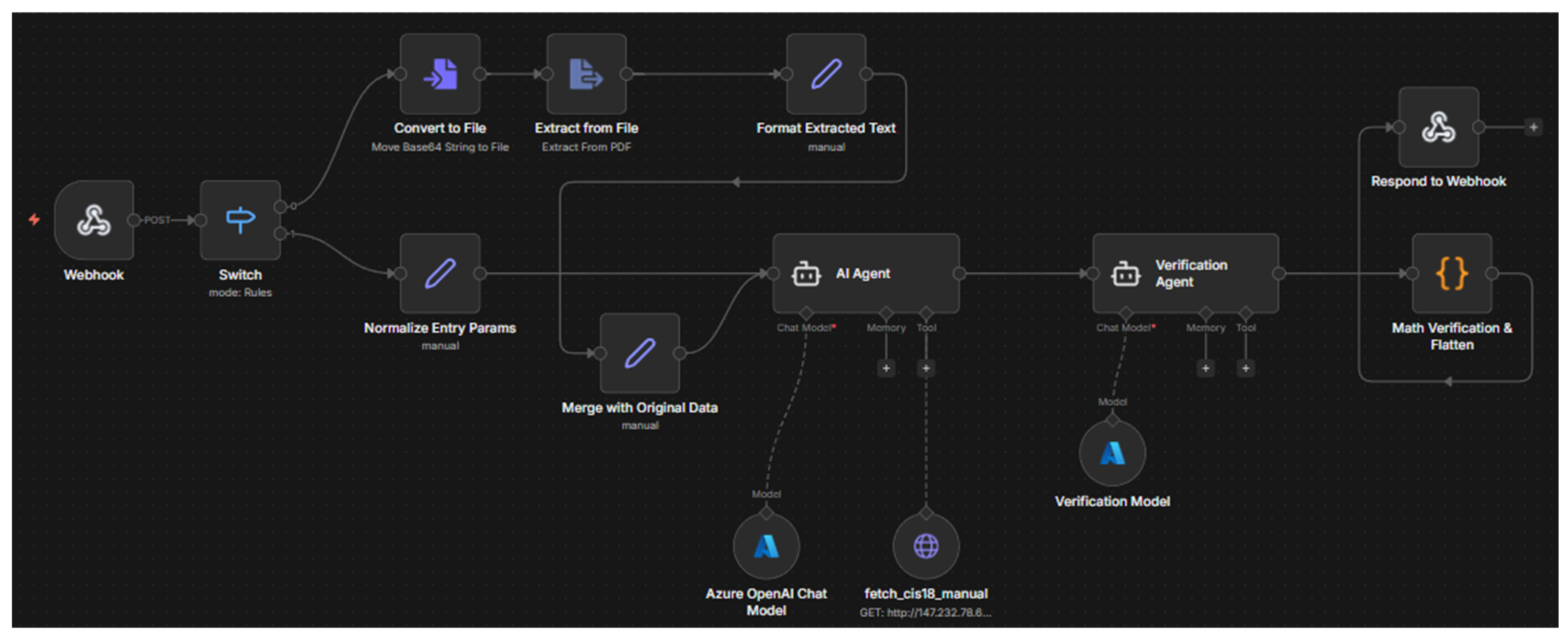 Figure 1 illustrates the complete n8n workflow architecture, and the following subsections detail each processing stage.