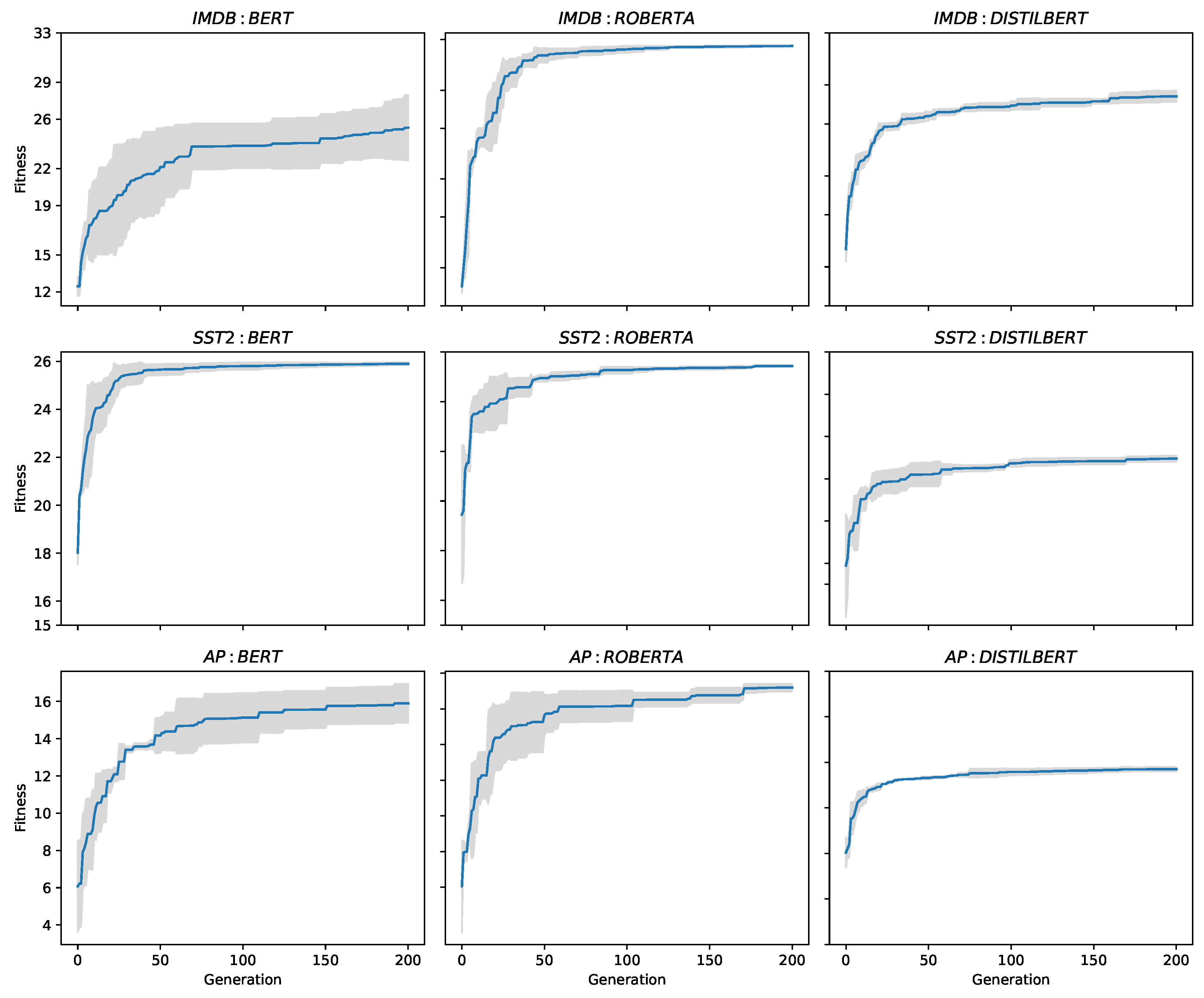 - GE-based Feature Corruption Sequence Generation: Using the generated grammar and input text, we evolve an optimal feature corruption sequence that maximises SRG.