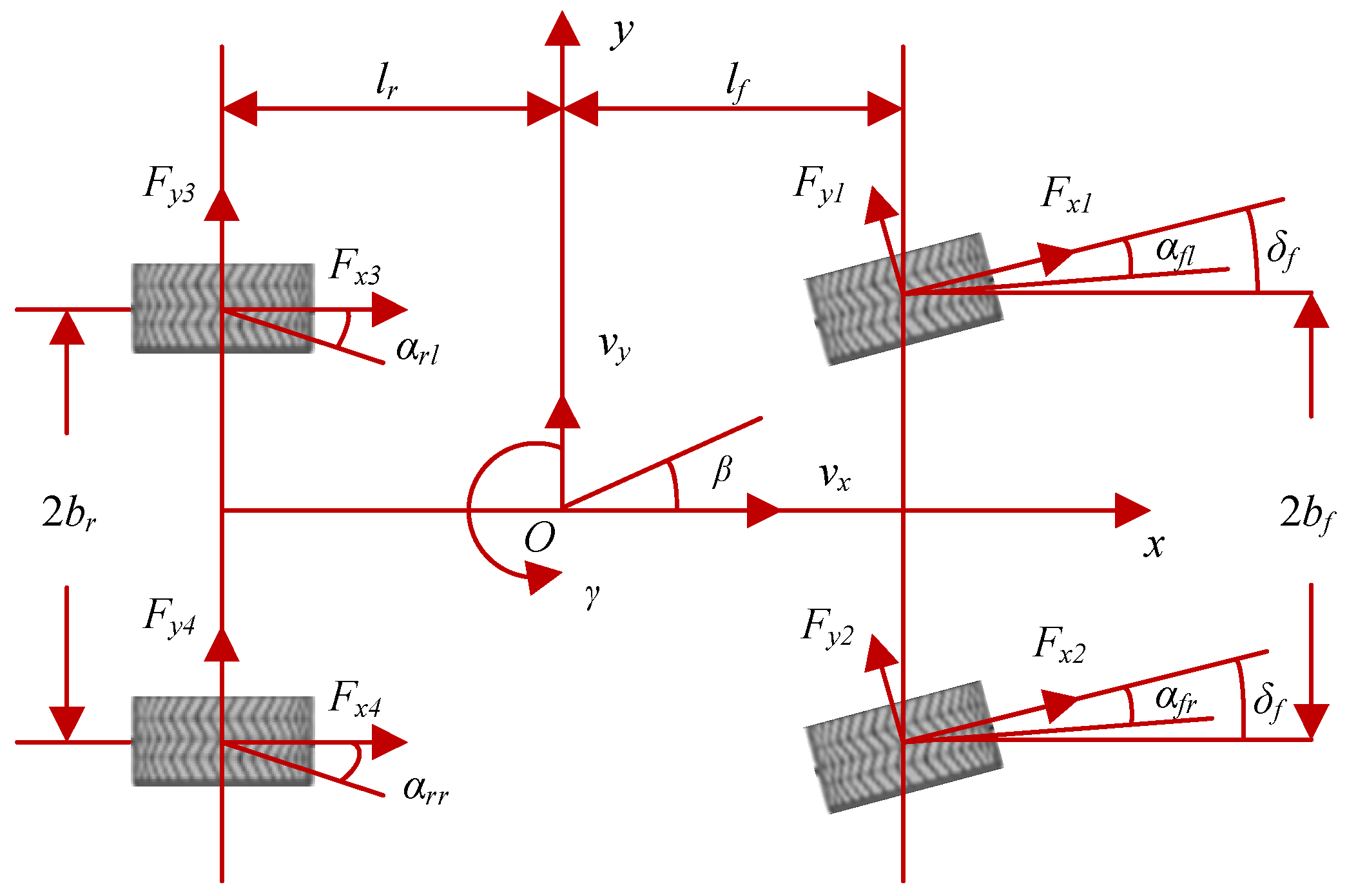 2.2. 3-DOF Vehicle Dynamic Model Considering Nonlinear Tire Model