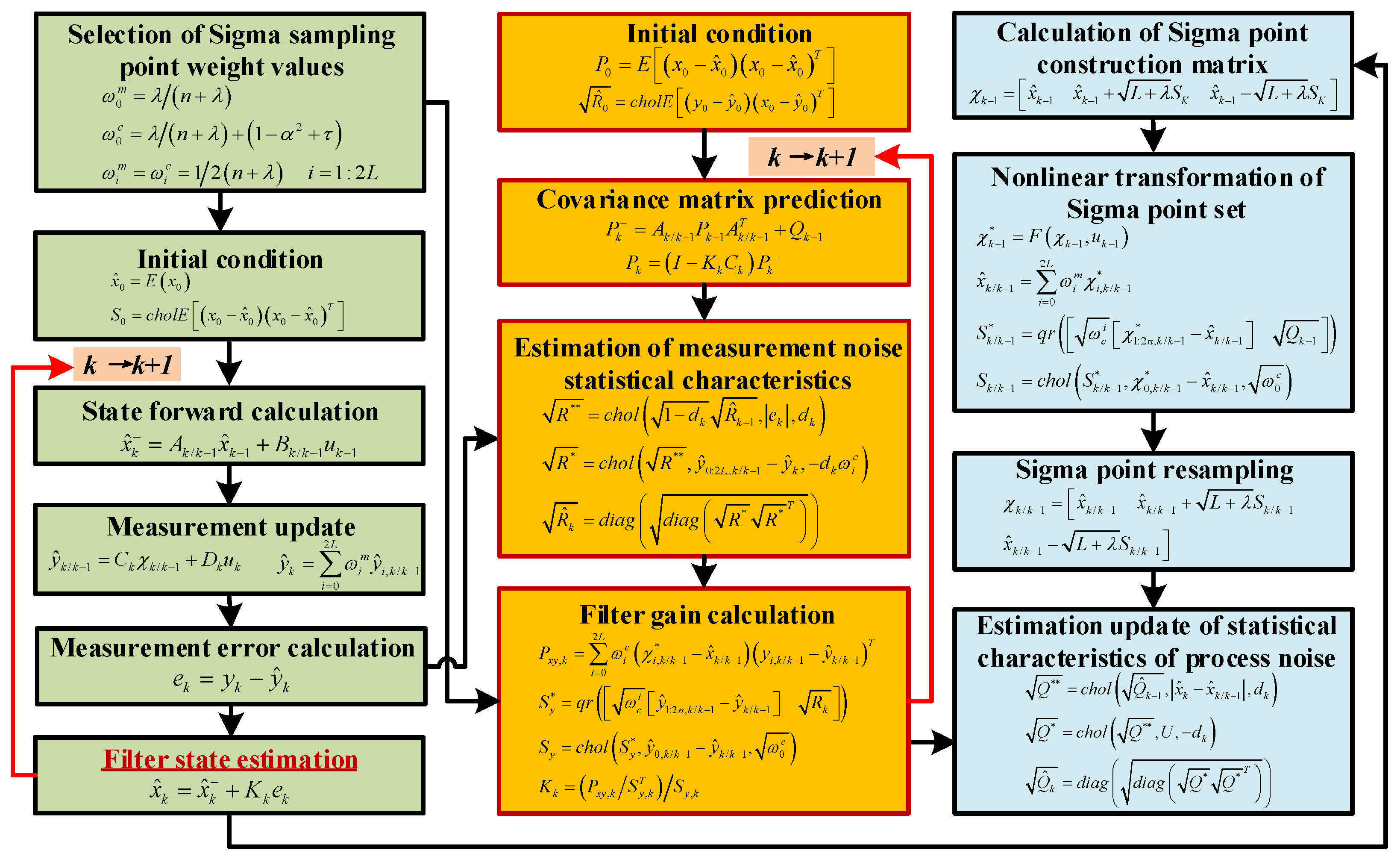 3.2.2. Improved ASUKF Combining with Sage-Husa Algorithm