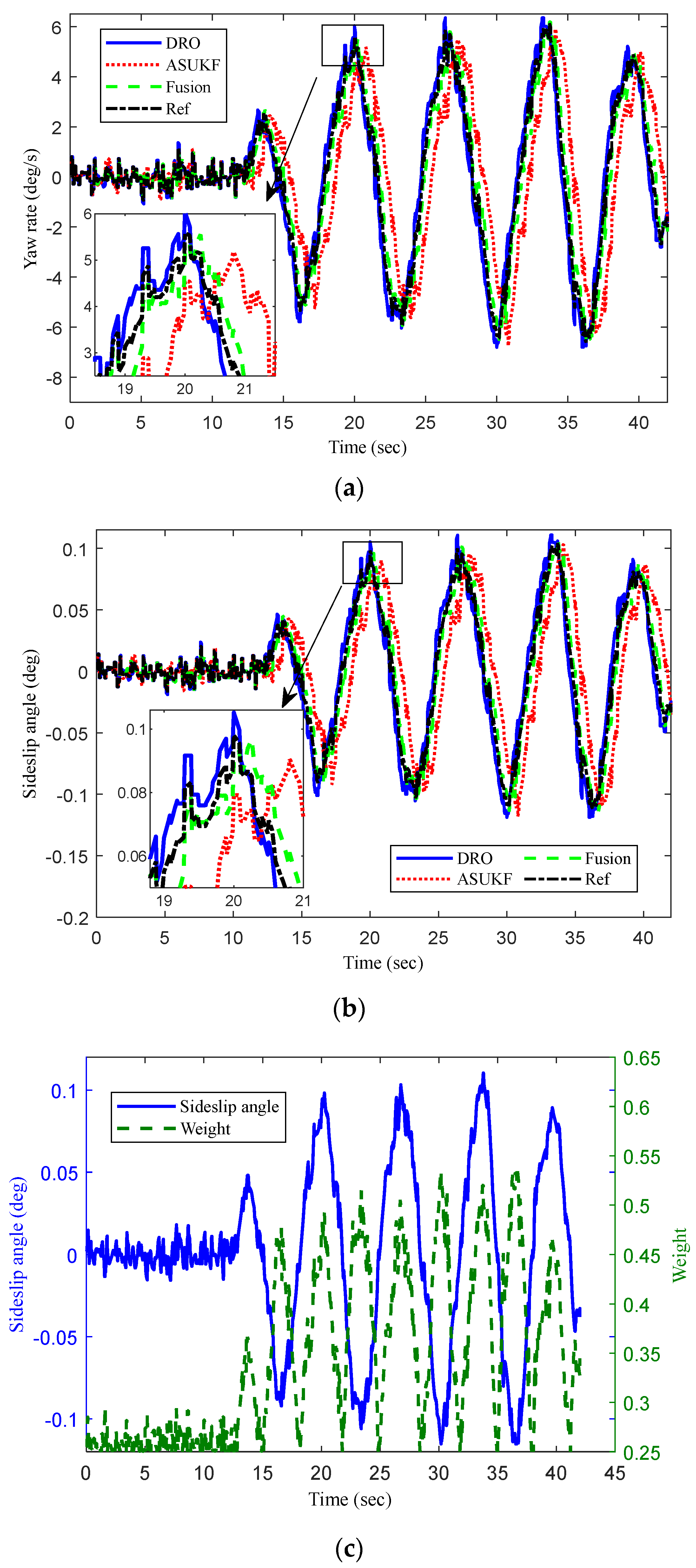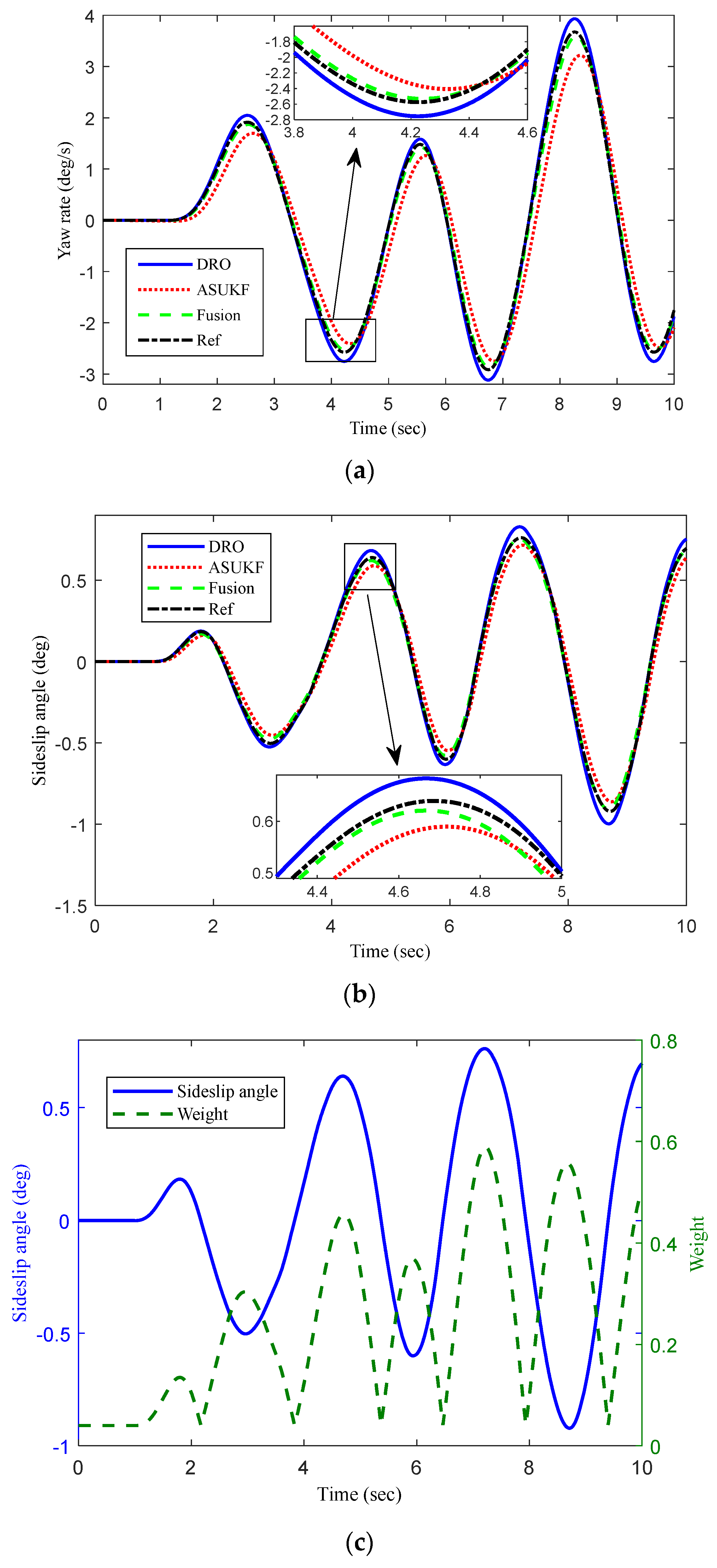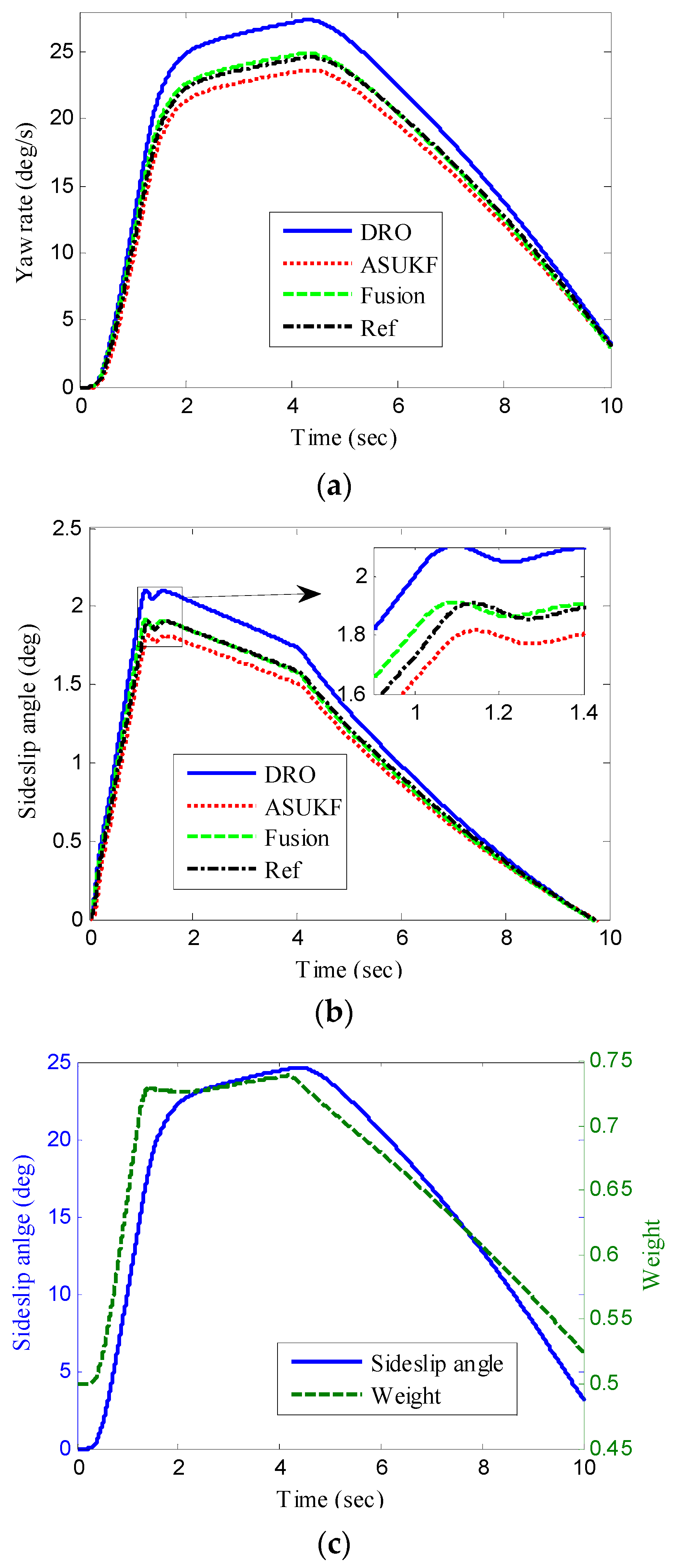 3.3. Vehicle Sideslip Angle Fusion Estimation by Adaptive Weight