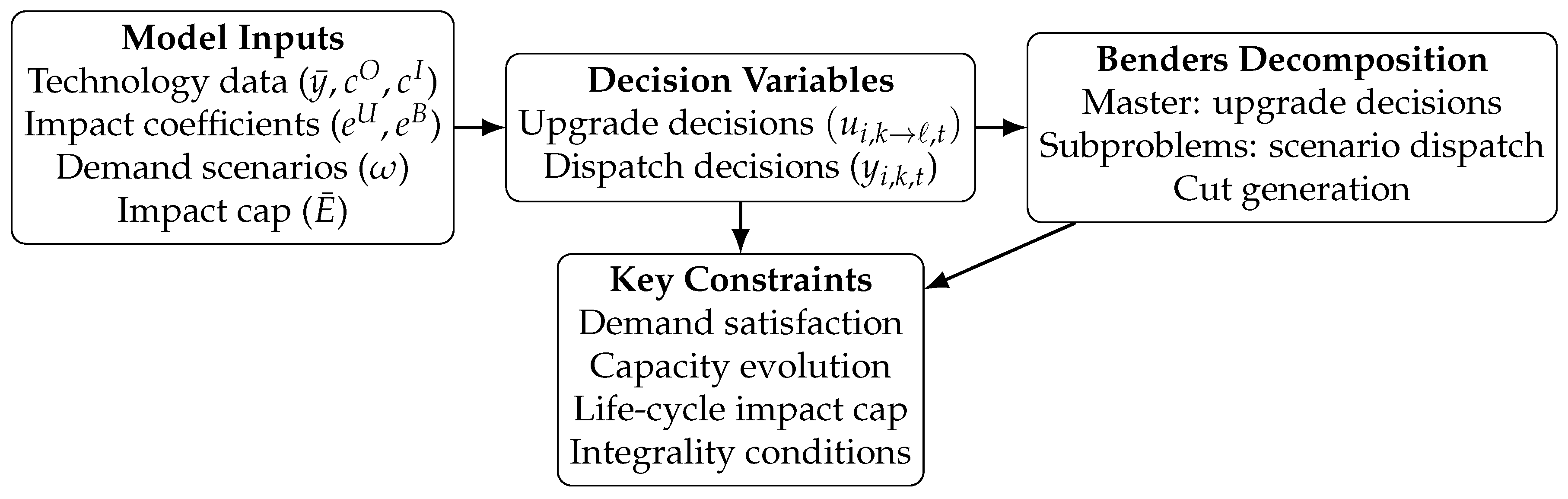 Overview of the proposed life-cycle constrained planning model and solution approach.