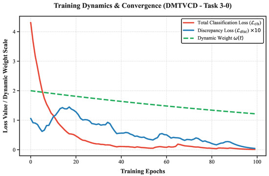 Training dynamics and convergence behavior of the proposed DMTVCD on Task 3-0.