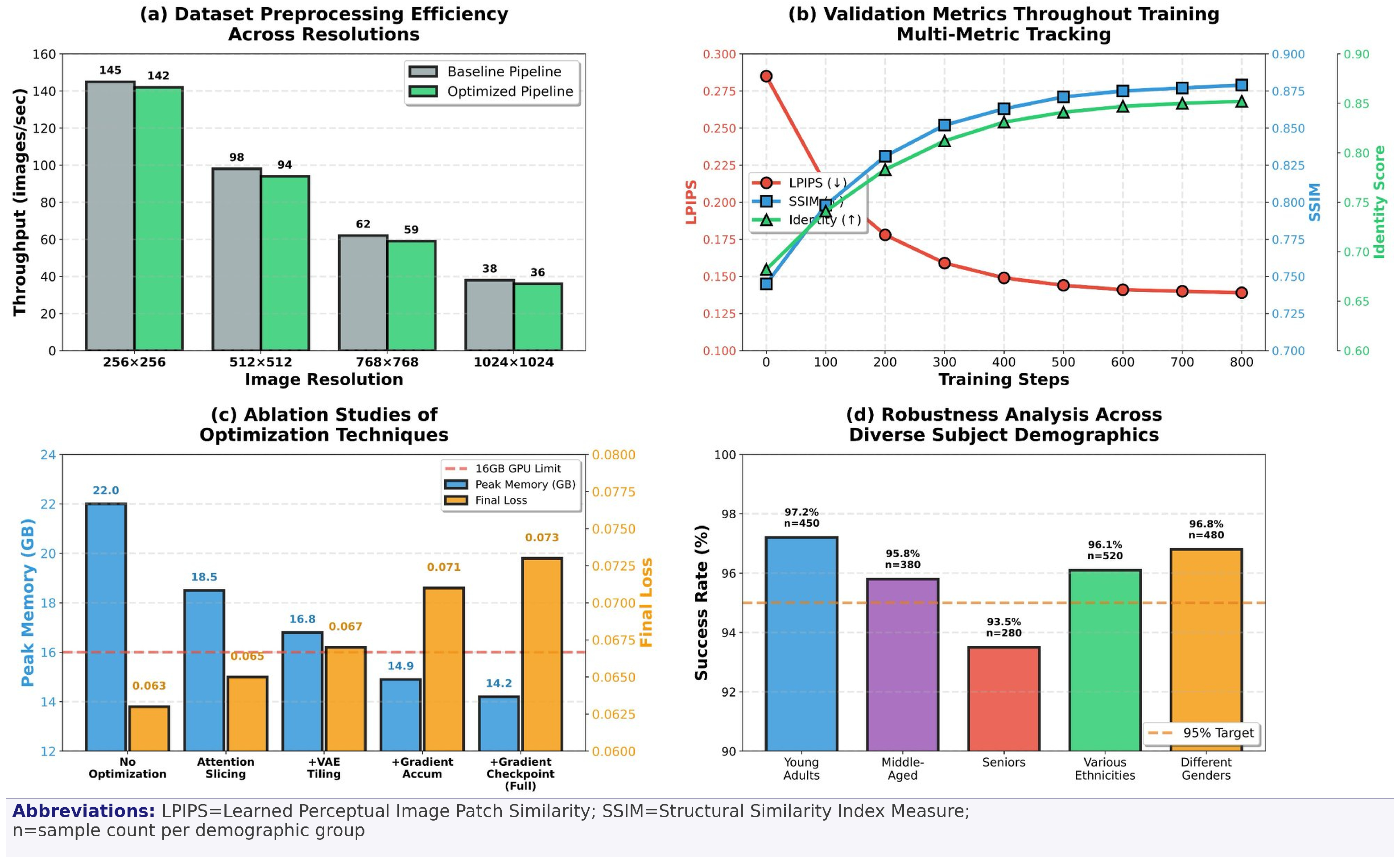 - Automated Quality Assessment System: A comprehensive multi-dimensional evaluation framework incorporating Learned Perceptual Image Patch Similarity (LPIPS), Structural Similarity Index Measure (SSIM), identity verification (cosine similarity), and photorealistic quality metrics for objective performance validation.