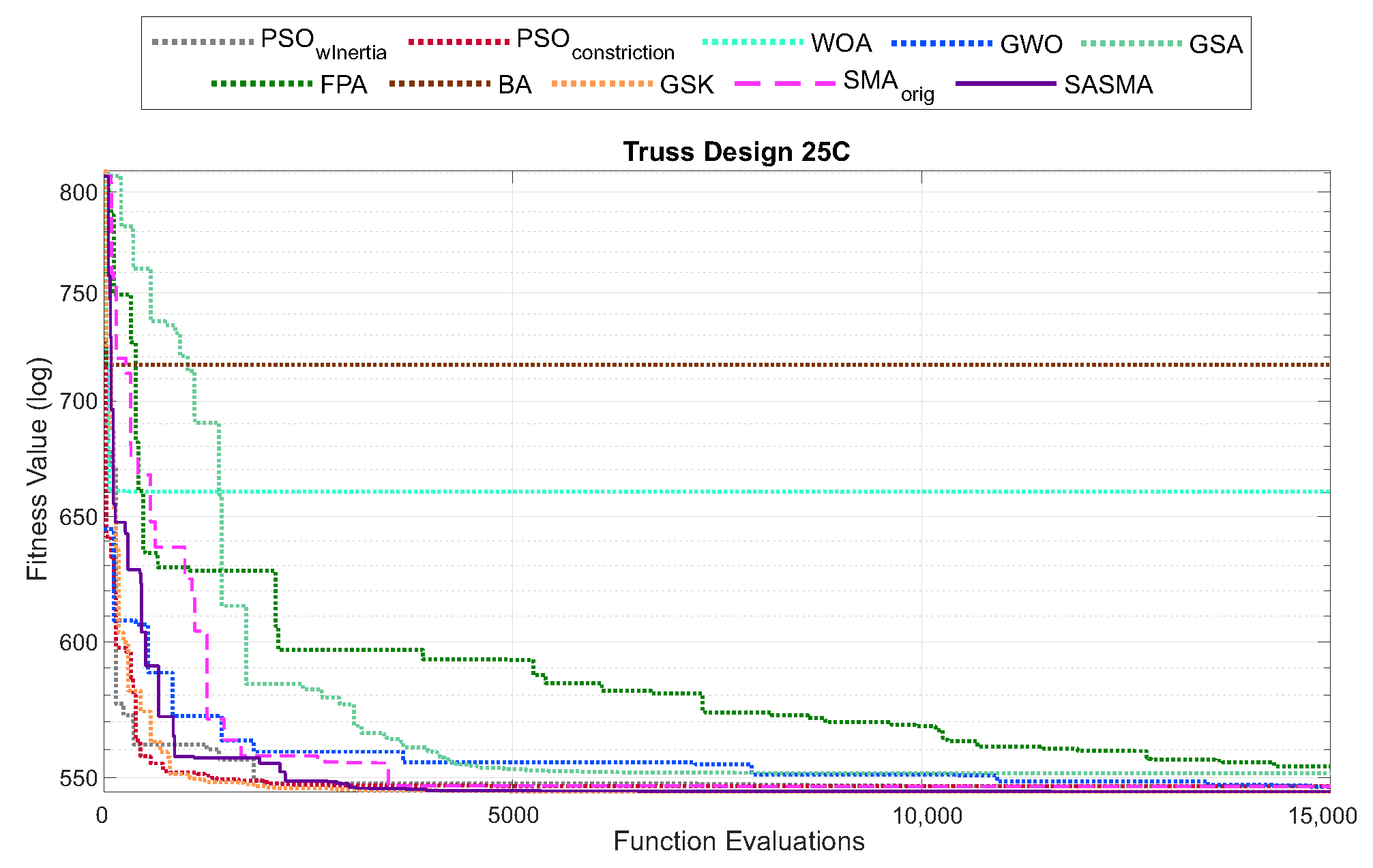 5.2. Case Study II: 25 Truss Bar Design (Continuous) Problem