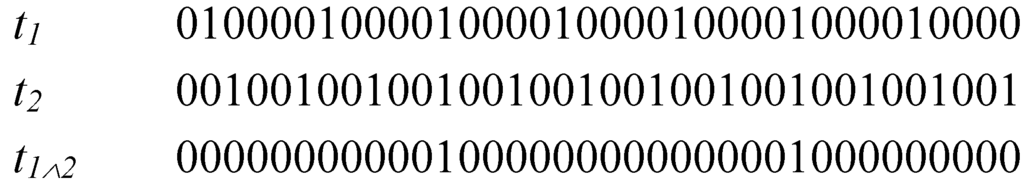 Consider two tasks t1 and t2 represented purely as binary sequences. This is shown in Figure 4 for the case where p1 = 5 and p2 = 3, with offsets of o1 = 1 and o2 = 2. The coincident task releases (logical AND) are also indicated, where a ‘1’ indicates that the two tasks are released (phased) together.