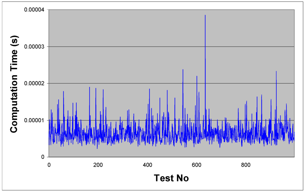 This Section describes a series of computational studies that were performed to gauge both the execution time and performance of the proposed algorithms. In each of the tests described in this section, a ‘typical’ desktop PC setup was employed to perform the assessments. The hardware used was standard off-the-shelf office computing equipment. The PC was based around an Intel® Core-2 Duo® processor running at 2.13 GHz, with 1 GB of RAM. The operating system employed was Windows® XP, and all software was written in C++ using the Borland® C++ Builder package, and compiled to favor speed. Timing measurements were taken using the Pentium® performance counter.