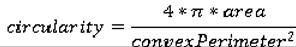 We use eight common image shape features: circularity, roughness, elongation, compactness, eccentricity, solidity, extent, and the standard deviation of the radial distance. Circularity is measured by dividing the circumference of the equivalent area circle by the actual perimeter of the nodule. Roughness can be measured by dividing the perimeter of the region by the convex perimeter. A smooth convex object, such as a perfect circle, will have a roughness of 1.0. The eccentricity is obtained using the ellipse that has the same second-moments as the region. The eccentricity is the ratio of the distance between the foci of the ellipse and its major axis length. The value is between 0 (a perfect circle) and 1 (a line). Solidity is the proportion of the pixels in the convex hull of the region to the pixels in the intersection of the convex hull and the region. Extent is the proportion of the pixels in the bounding box (the smallest rectangle containing the region) that are also in the region. Finally, the RadialDistanceSD is the standard deviation of the distances from every boundary pixel to the centroid of the region.