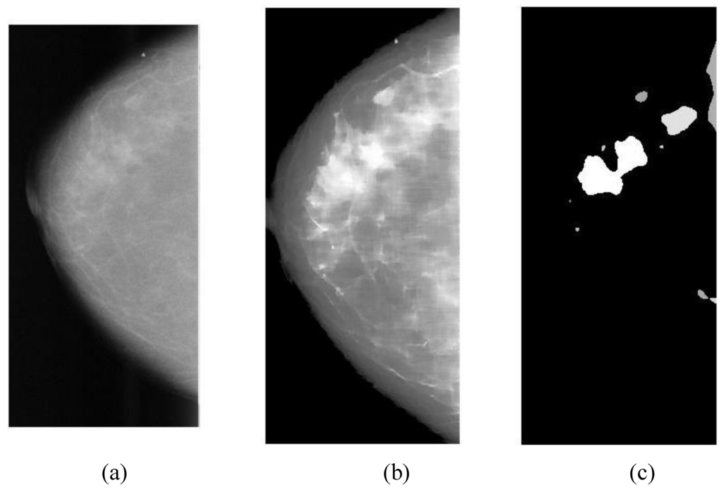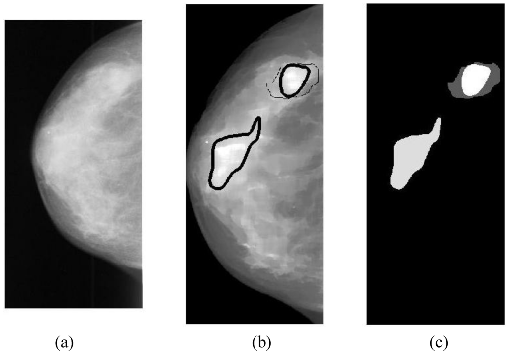 - Heath, M.; Bowyer, K.W.; Kopans, D.; Moore, R.; Kegelmeyer, P. Current status of the digital database for screening mammography. In Digital Mammography; Kluwer Academic Publishers: Nijmegen, The Netherlands, 1998; pp. 457–460. [Google Scholar] [Green Version]