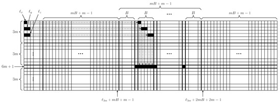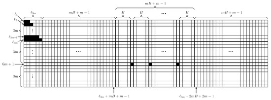 As a result, each first move to a column with , then move vertically to . Moreover, in any configuration in , each column with has at most one black piece. This means that , , must be able to partitioned into m groups that all have the same sum B. Therefore, is a yes instance.