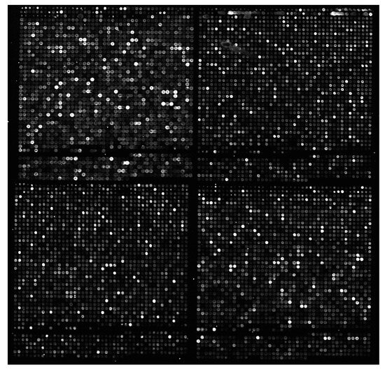 - Uslan, V.; Bucak, I.O. Clustering-Based Spot Segmentation of cDNA Microarray Images. In Proceedings of the 2010 Annual International Conference of the IEEE Engineering in Medicine and Biology Society (EMBC), Buenos Aires, Argentina, 31 August–4 September 2010; pp. 1828–1831. [Google Scholar]