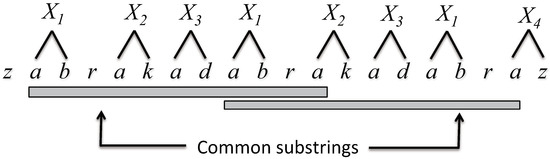 - Sakamoto, H.; Kida, T.; Shimozono, S. A Space-Saving Linear-Time Algorithm for Grammar-Based Compression. In Proceedings of the 11th International Symposium on String Processing and Information Retrieval (SPIRE ’04), Padova, Italy, 5–8 October 2004; pp. 218–229. [Google Scholar]
