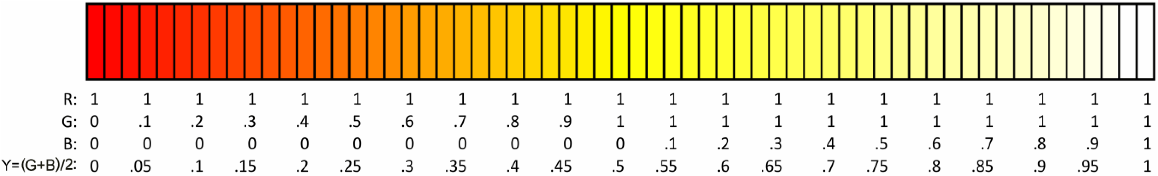 Colorization of a value Y between 0 and 1: Y = (G + B)/2.