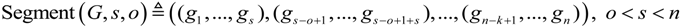 The segmentation operator divides an n-gram into partially overlapping s-grams (segments) with s > 1. The extent of overlapping is established by the parameter o, i.e., the number of items common to any subsequent segments: