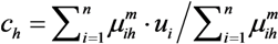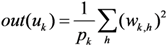where wk,h are the weights corresponding to the pk connections related to the node uk.