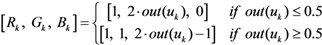 Figure 6 shows a large range of achievable colors with the corresponding value of out(uk, i.e., Y = (G + B)/2.