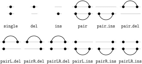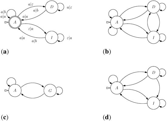 - Searls, D.B.; Murphy, K.P. Automata-theoretic models of mutation and alignment. In Proceedings of the ISMB, 1995; Rawlings, C.J., Clark, D.A., Altman, R.B., Hunter, L., Lengauer, T., Wodak, S.J., Eds.; pp. 341–349.