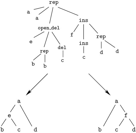 - Touzet, H. Tree edit distance with gaps. Inf. Process. Lett. 2003, 85, 123–129. [Google Scholar] [CrossRef]