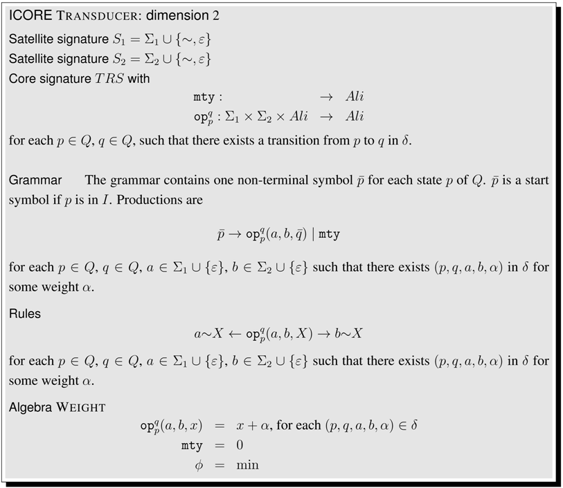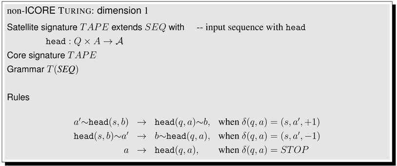 This concludes our informal presentation of ICOREs. The reader who feels familiar with established concepts such as signatures, rewrite rules and tree grammars may skip ahead from here to the definition of ICOREs in Section 4.