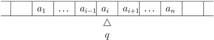 | ‘a’, ‘b’, ‘<’ | symbols in single quotes, typewriter font | concrete alphabet symbols |