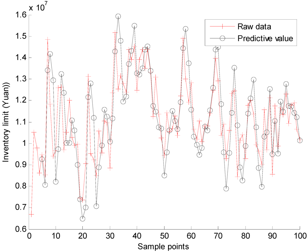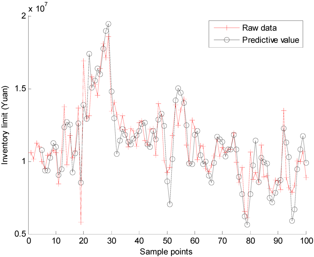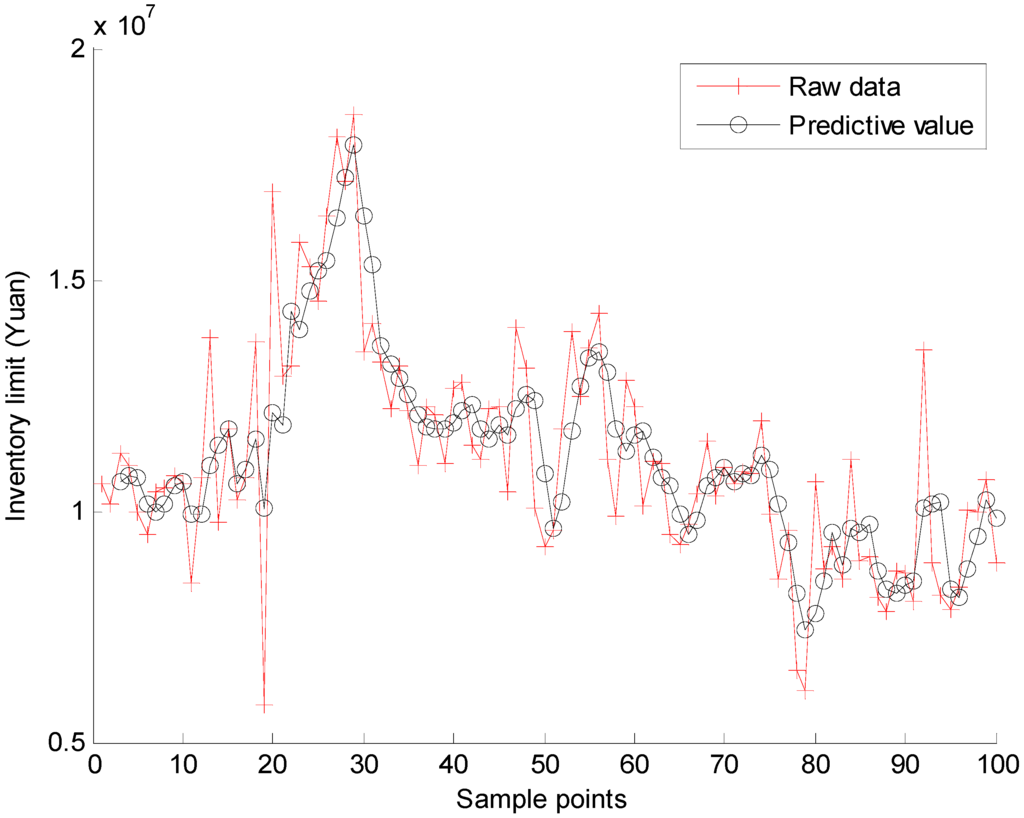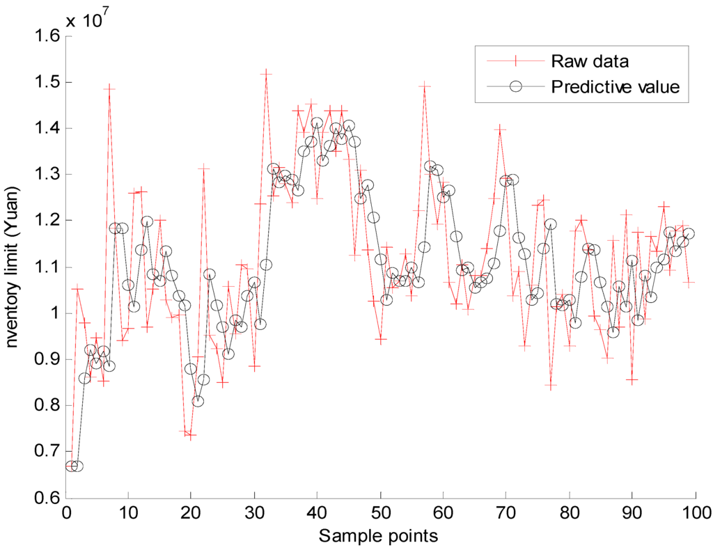 Based on the collected data in a commercial bank from January to April in 2011and 2012, the first moving average method is adopted to realize the time series prediction of bank cash flow. The cycle number of the moving average in 2011 is 2–15 and the continuous sample points are 100. The optimal moving average value for the selected data is N = 6 and the simulation results are shown in