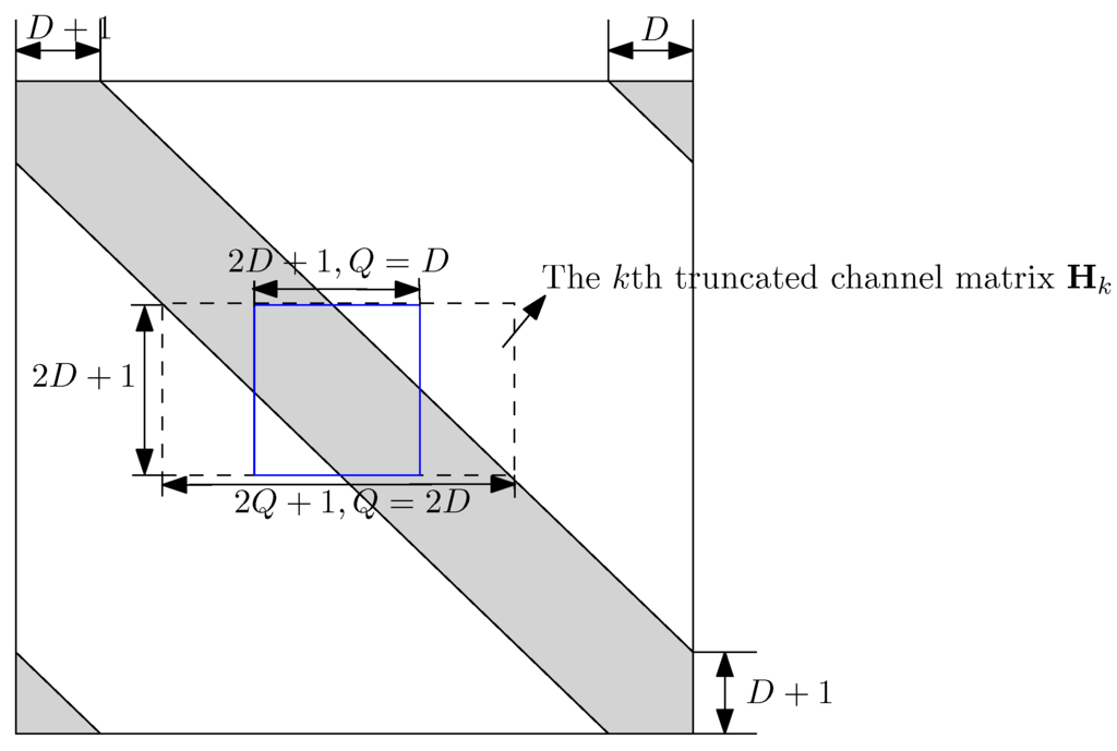 We employ a banded channel matrix for OFDM systems over doubly-selective channels, as shown in Figure 2 and [4], so the truncated system model for the k-th subcarrier can be approximated as below: