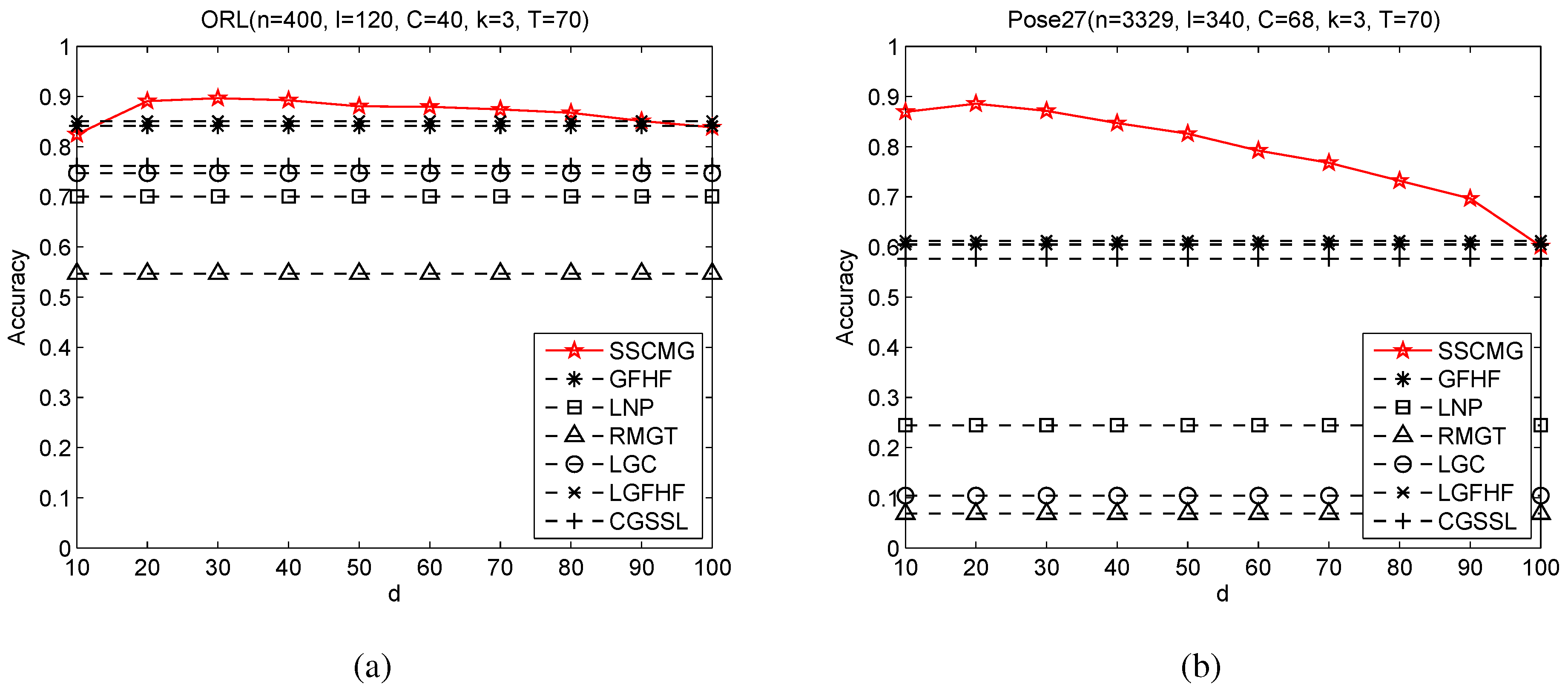 , the accuracy of SSCMG is relatively low, even lower than that of GFHF on ORL. The accuracy of SSCMG increases as