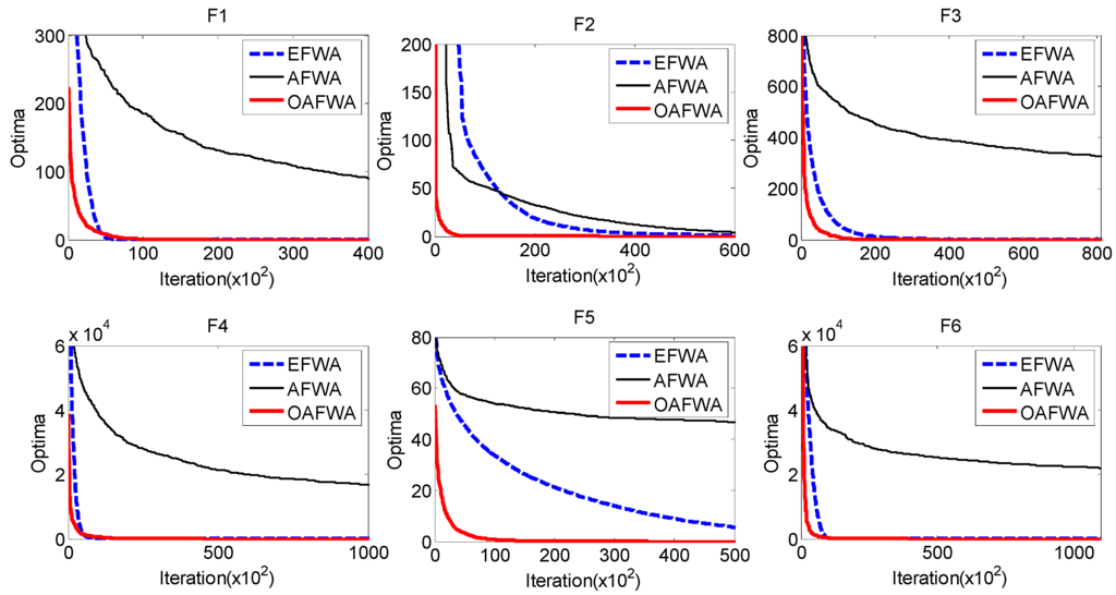 Figure 2 shows searching curves for EFWA, AFWA, and OAFWA.