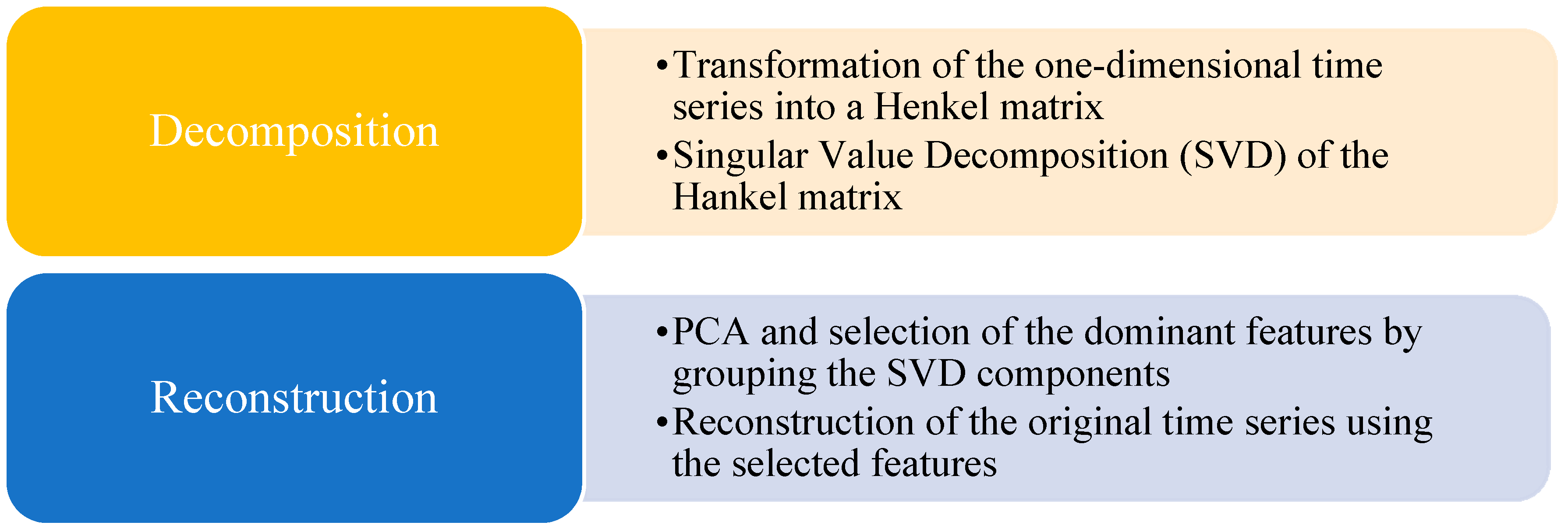 The SSA technique is composed of two steps that are complementary to each other, decomposition and reconstruction.
