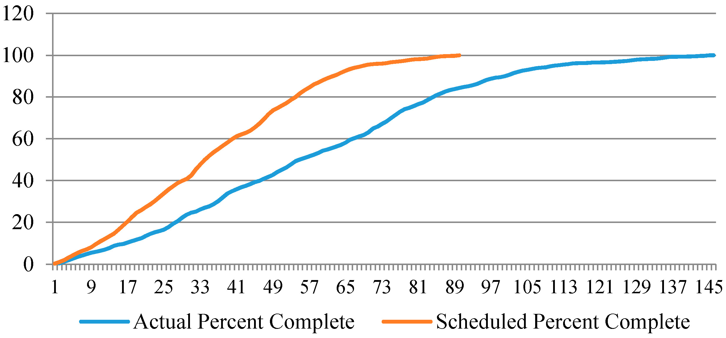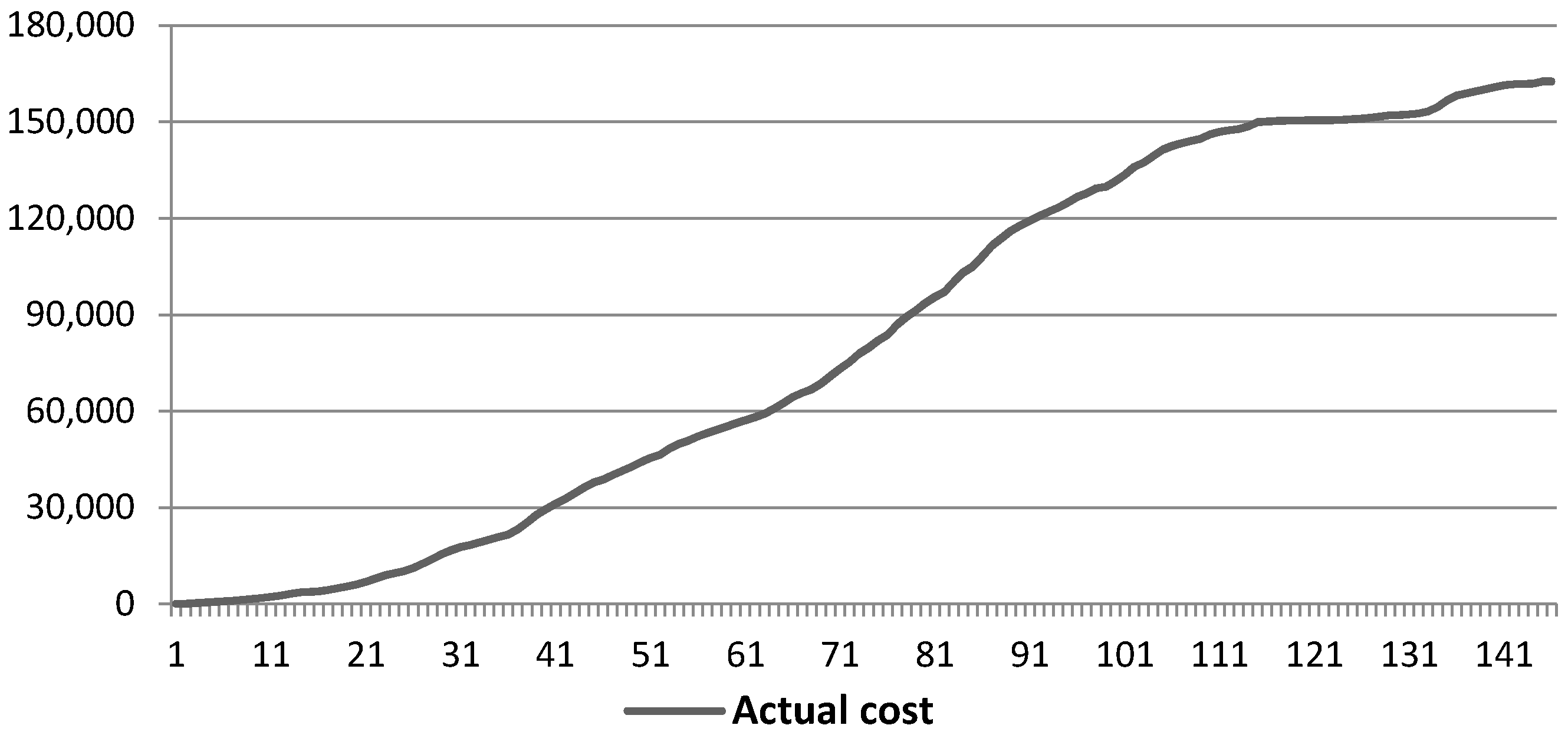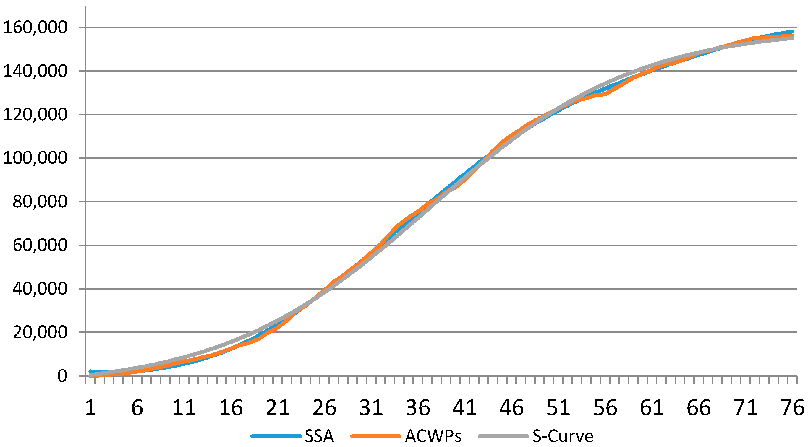 S-Curve displays accumulated efforts or costs of a project and represents the function of time or cost. In fact, this curve was employed to control and check progress in a set of projects related to each other. Moreover, it is showed that this is possible to characterize the progression of the overall cost of any project [35]. The results of the study inductively concluded that the rising slope in the S-curve, and the point of time when half of the total funds have been consumed, are two numbers that represent this curve.