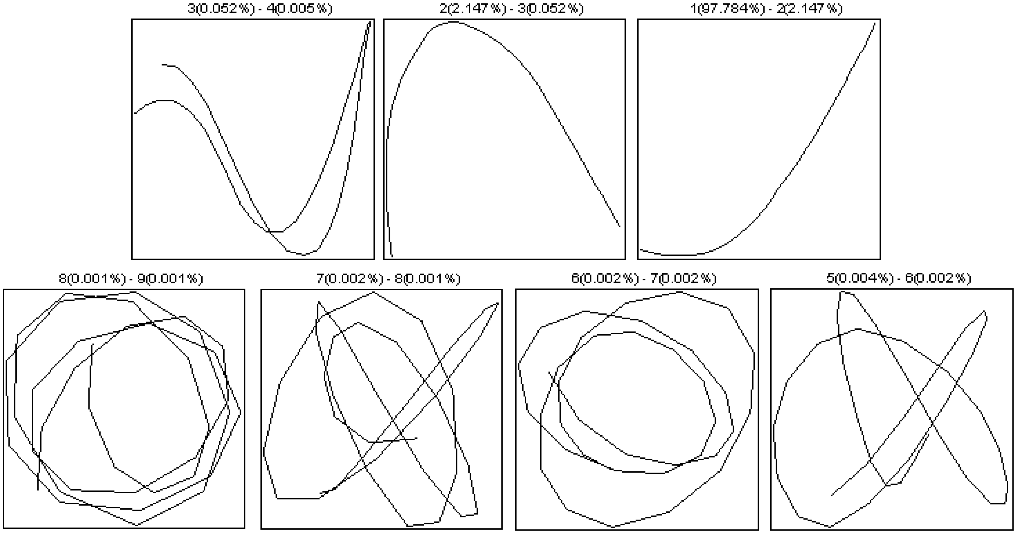 The second step is called the SVD step, which sums up elementary matrices of rank-one bi-orthogonal to obtain the singular value decomposition of the trajectory, , where and are eigenvalues and eigenvectors of matrix, , and . The set () is referred to as a value of the matrix X called the i-th eigentriple, in which si represents the singular value of X or its i-th value (whose value is equal to the square root of the i-th eigenvalue of matrix XXT); Ui is the i-th left singular vector of X (equivalent to the i-th eigenvector of XXT); and Vi is the i-th right singular vector of X (equivalent to the i-th eigenvector of XTX). A group of r eigenvectors determines an r-dimensional hyperplane in the L-dimensional space, RL of vectors, Xj.