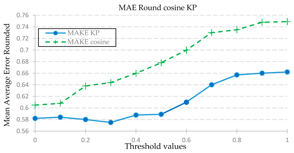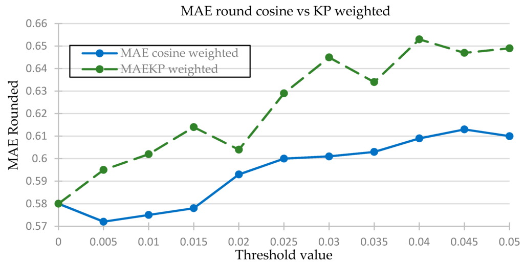 Figure 4. Comparison of MAE value using KP correlation vs. cosine similarity.
