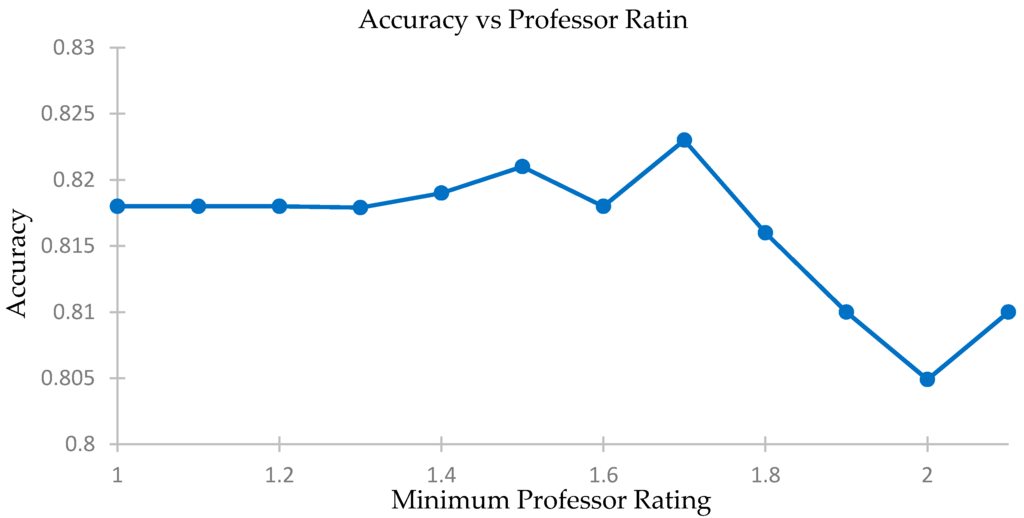 4.4. Checking Effects of Professor Rating Filter on Accuracy of Predictions