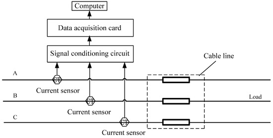 The star connection mode was used with the neutrals grounded. The signal collection card was a NI PCI-9203. The closed-loop Hoare current sensors CHB-25NP were from Beijing SENSOR Electronics Co., Ltd. (Beijing, China).