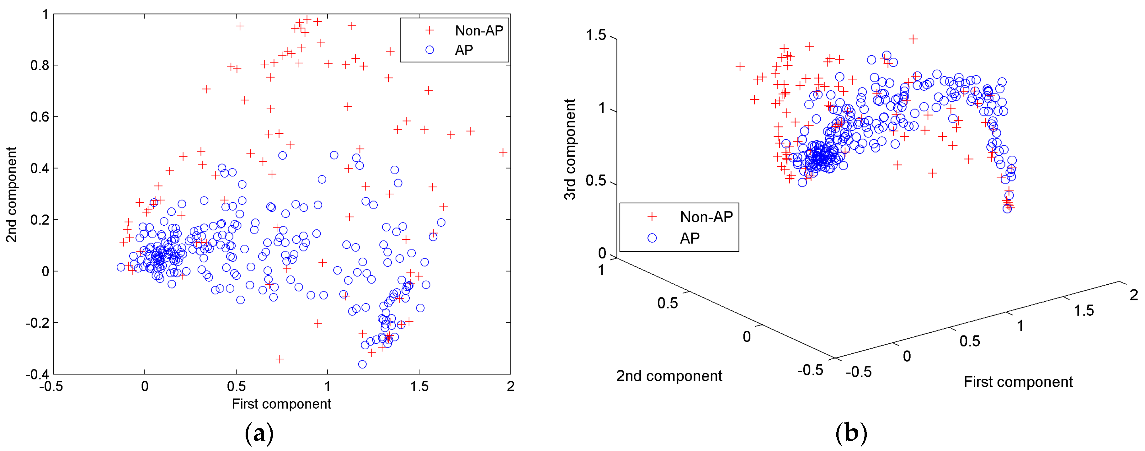 Common classification method includes ANN [70,71,72,73], SVM [70,71], LDA [69], pattern matching [74,75], and k-nearest neighbors [76], etc. In our research, we compared four methods for classifying AP signals.